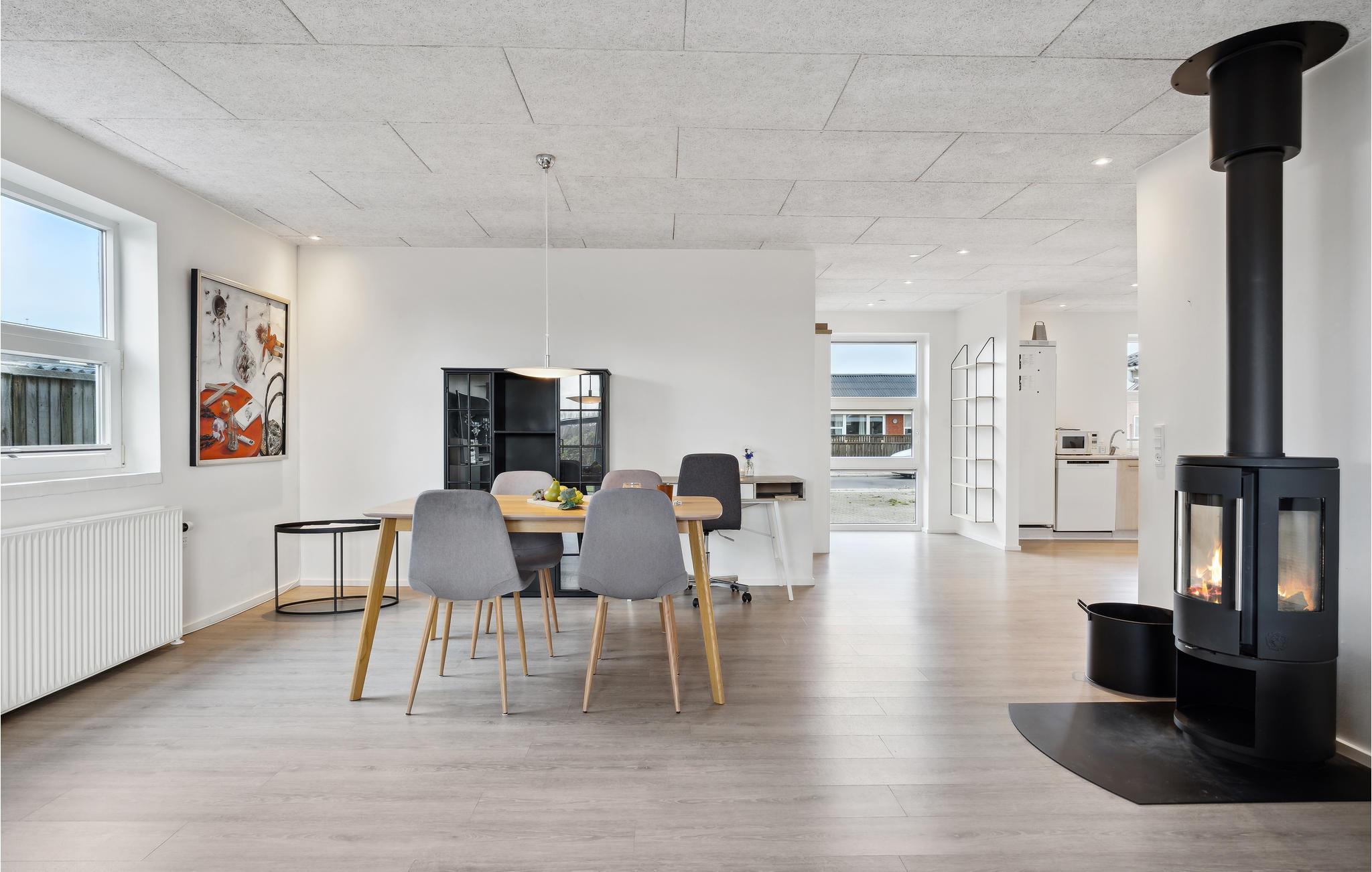 Placeringen af dette feriehus kunne ikke være bedre, da havnen, den smukke sandstrand og Nissum Fjord kun er en kort gåtur væk. Hvis I har fiskestangen med, har I de ideelle betingelser for at prøve lykken. Bider fiskene ikke på, kan I købe både frisk og røget fisk i Thorsminde. Planlæg nye aktiviteter hver dag, såsom at dase og bade på Vesterhavsstranden, se på fugle på fjorden og dyrke vandsport på havet eller fjorden. Cykelture eller dagsture til Nationalpark Thy er selvfølgelig også på programmet! Besøg Strandingsmuseet St. Georg og få et indblik i livet til søs og dets farer eller tag på vandretur i den smukke Naturpark Nissum Fjord. Hvis I kører mod syd, kommer I til Husby, hvor en klitplantage indbyder til skønne naturture. Den omkringliggende natur er varieret og fascinerende med vand på begge sider.