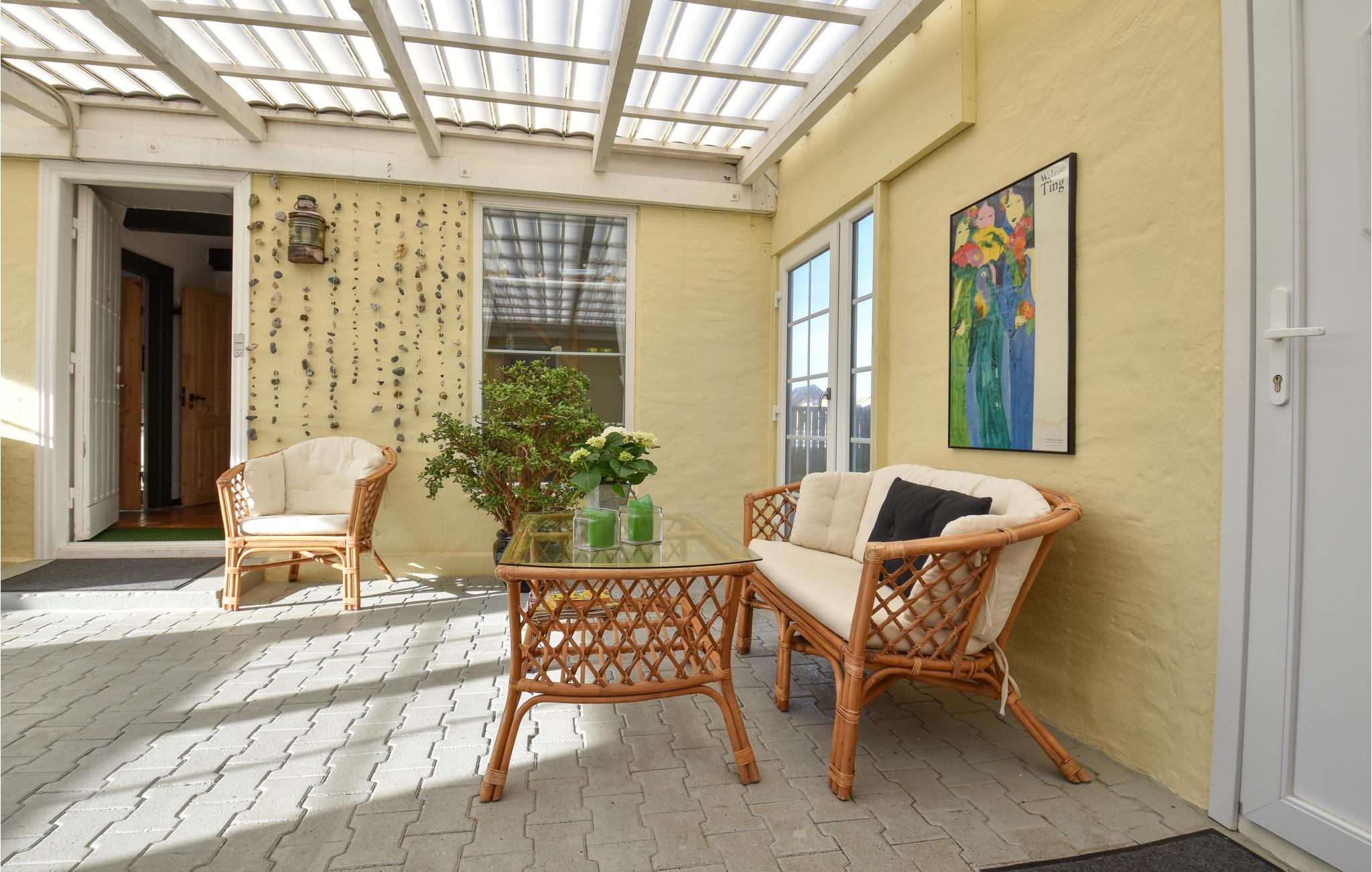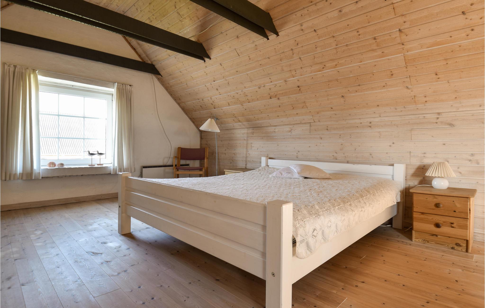 Huset er godt indrettet med en stor, lys havestue, som I nok kommer til at tilbringe det meste af ferien i, da her er lyst, god plads og en utrolig hyggelig atmosfære. Fra havestuen er der adgang til et badeværelse med bruser, en gang med vaskemaskine og tørretumbler samt et soveværelse med dobbeltseng. I hovedhuset er der udover en hyggelig stue med brændeovn, et badeværelse med bruser og et veludstyret køkken samt et soveværelse i stueplan. På 1. sal findes yderligere 2 soveværelser med henholdvis en sovesofa til 2 personer og en dobbeltseng samt 2 ekstra madrasser. Her er også plads til at sidde og læse en god bog eller spille spil og nyde udsigten over klitterne. 1. salen opvarmes med elvarme, mens der er opsat varmepumpe i stuen til opvarmning af stueetagen. Havestuen er uopvarmet, og der er udgang til terrassen samt til den indhegnede have. Boxer TV med en tysk kanal (ZDF).
