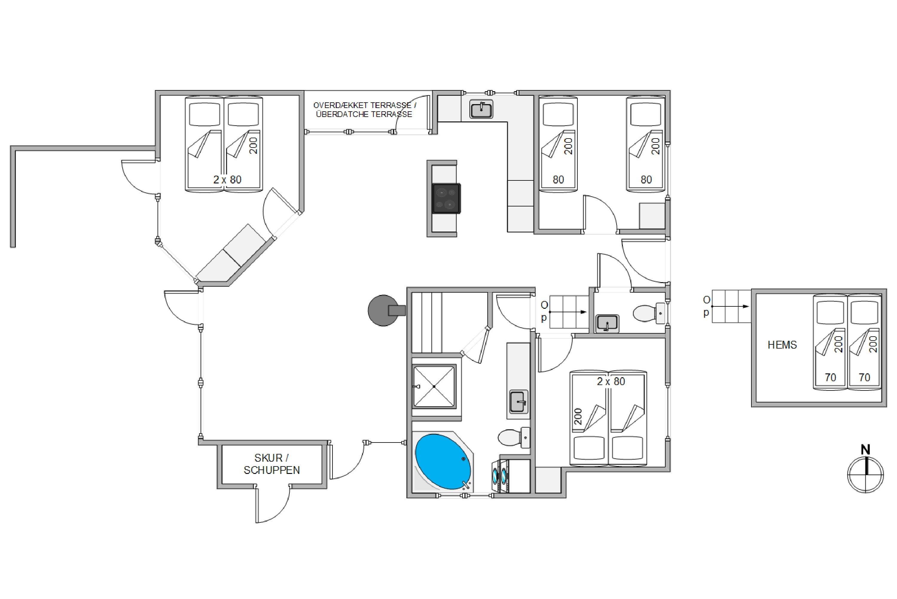1. soverum/sengestørrelser2 x 80 x 200 cm