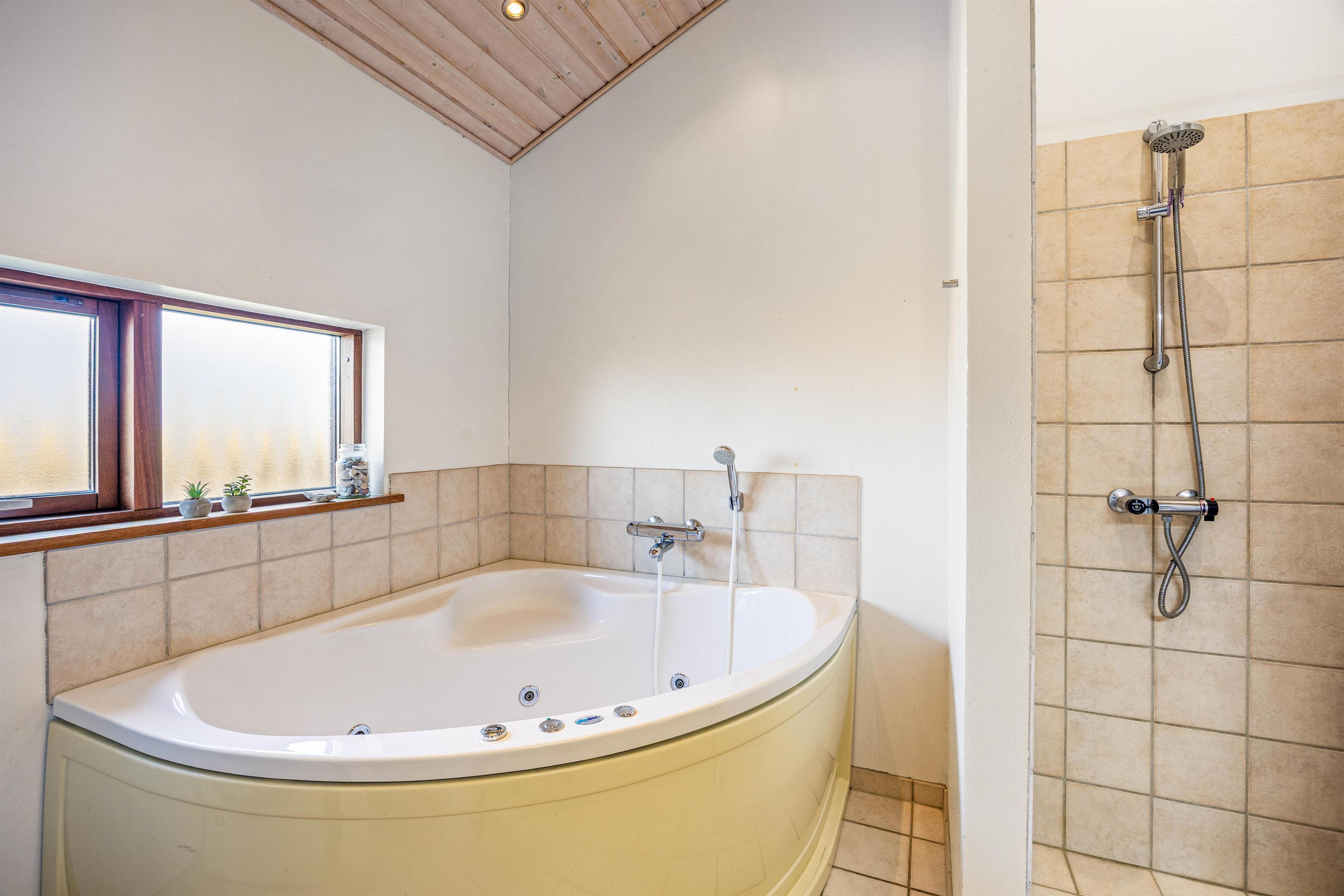 Feriehuset har 3 soveværelser, alle indrettet med dobbeltsenge, så der er god plads til hele familien eller en gruppe venner. Derudover finder I et badeværelse med gulvvarme, sauna og spabad, hvor I kan slappe af og få varmen efter en dag i den friske vestenvind. Der er også et gæstetoilet, som gør morgenrutinerne lettere.