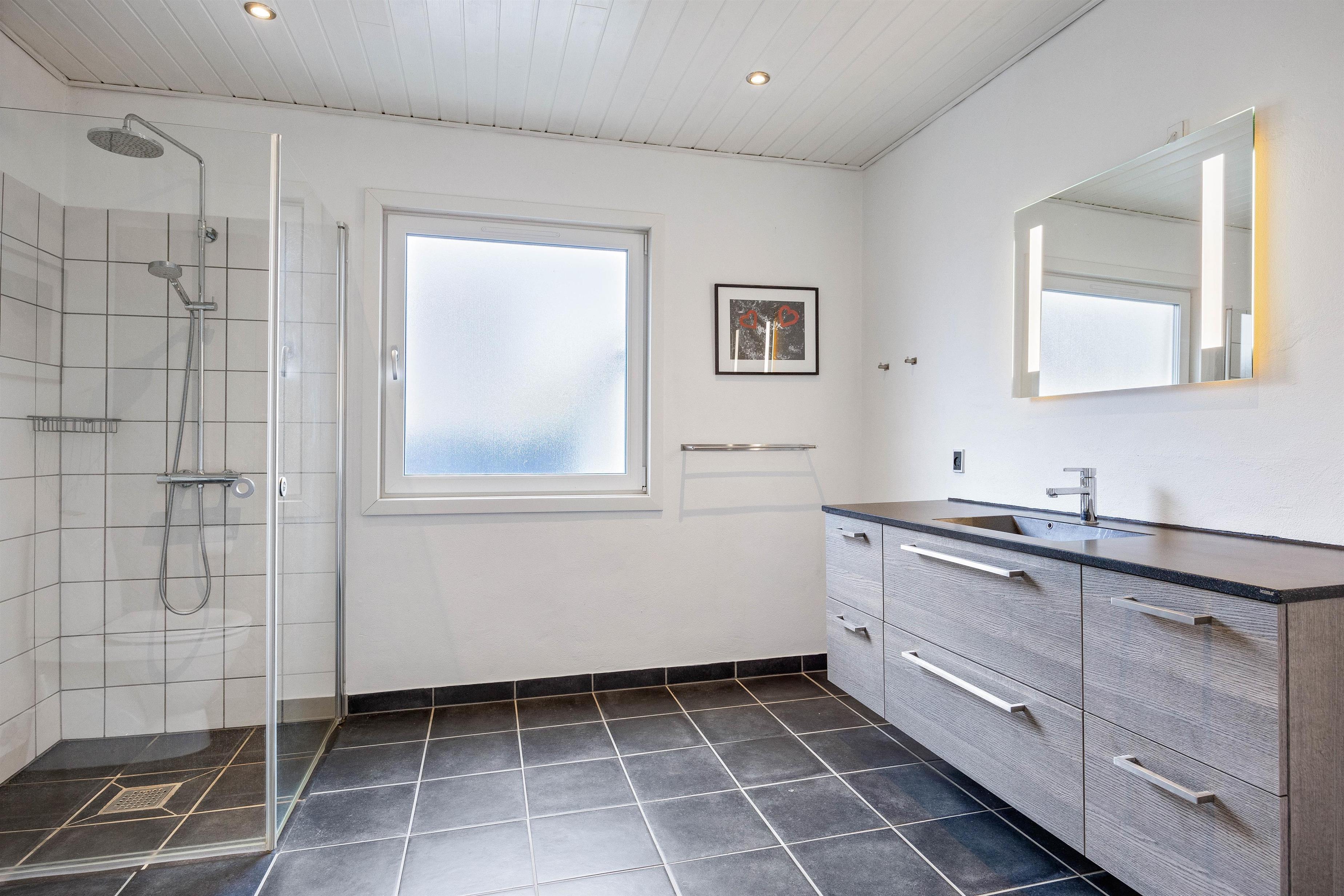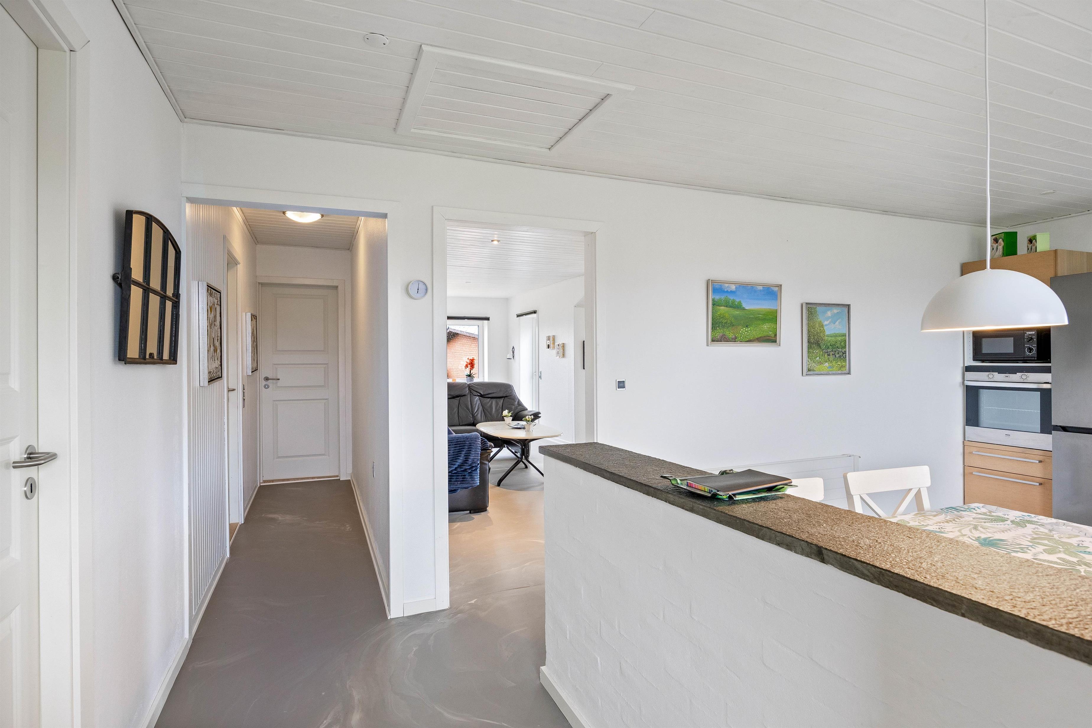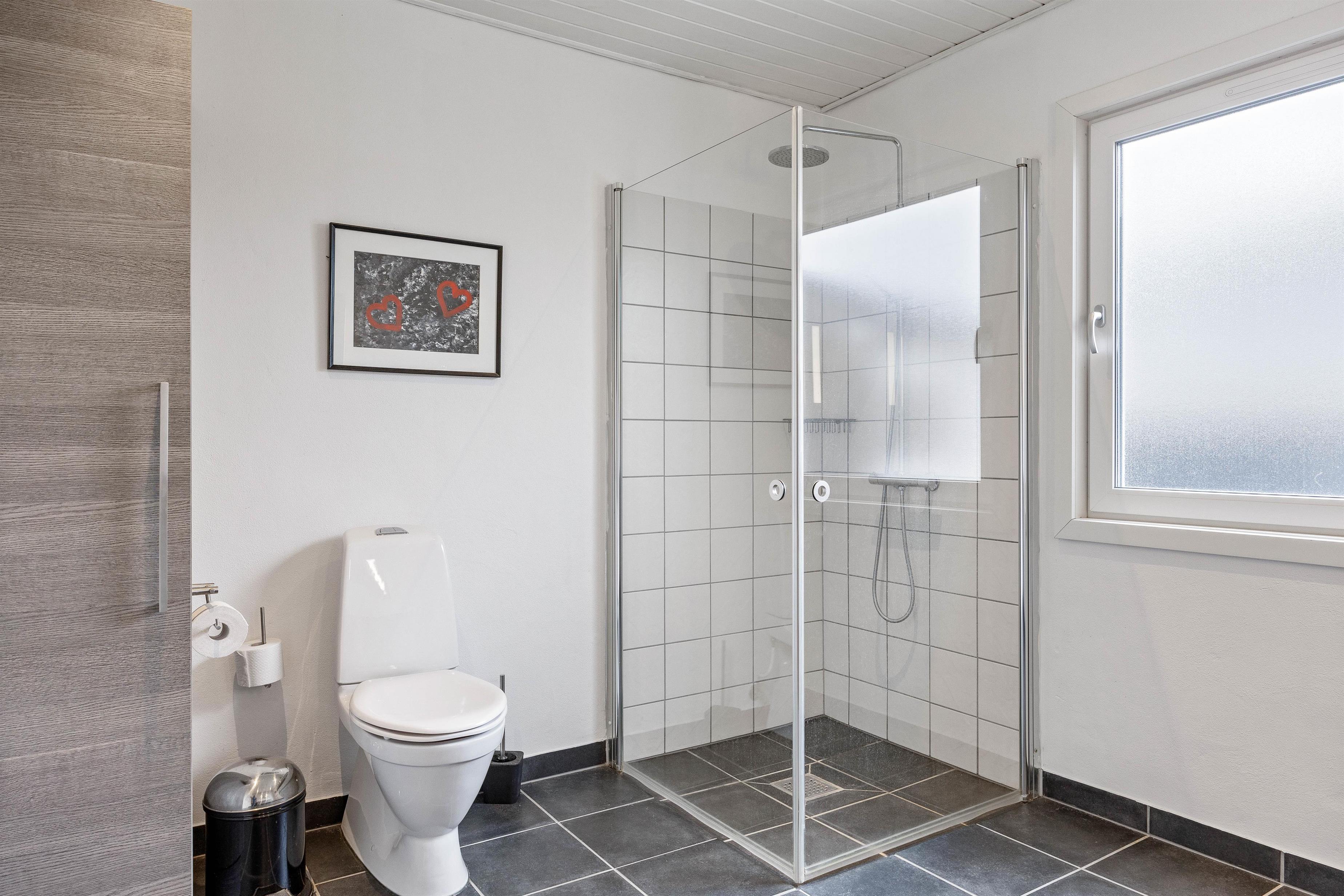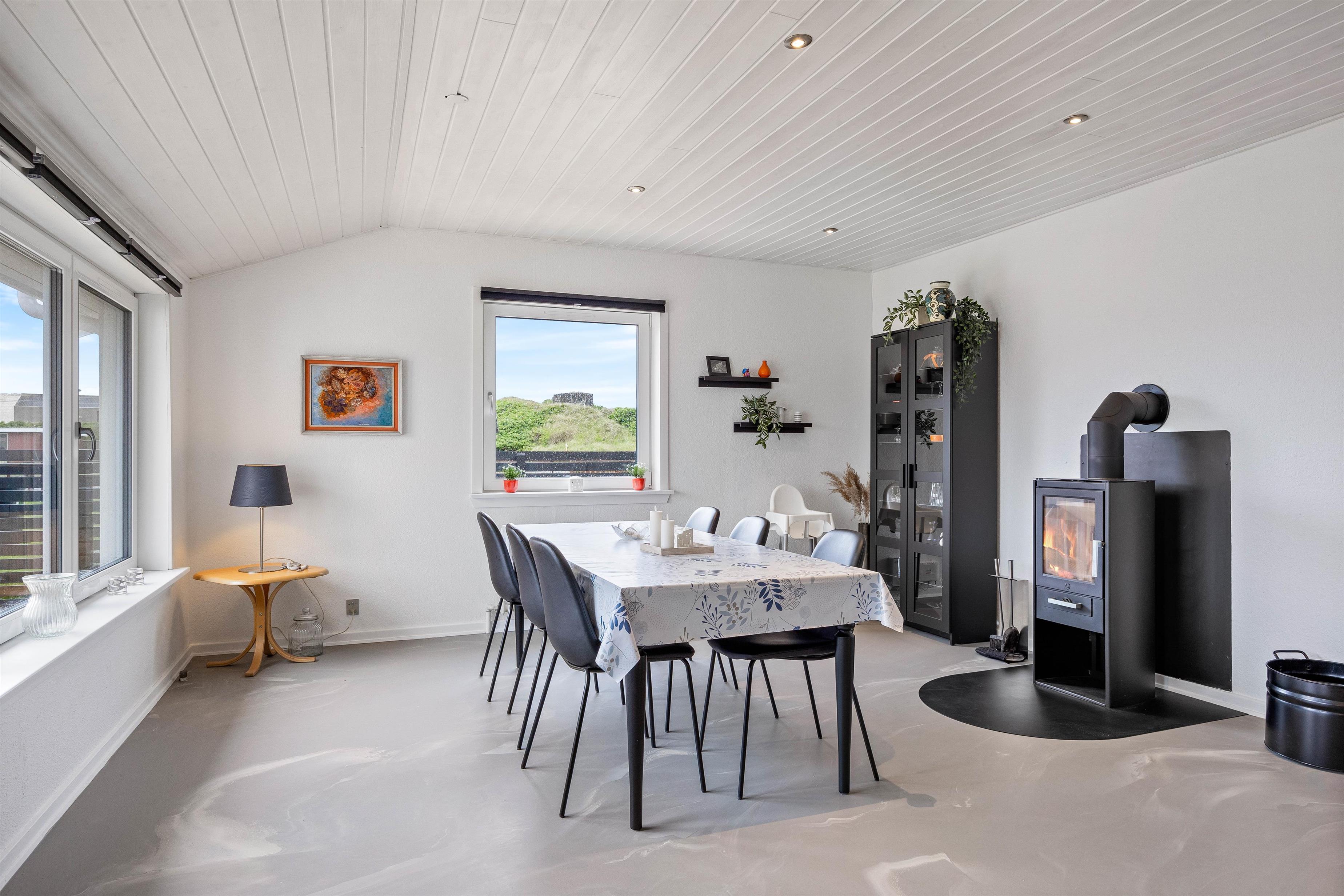 Feriehusets hjerte er helt klart den store stue, hvor I kan se en god film sammen og nyde hinandens selskab. Det er også her I finder en brændeovn, som er oplagt at tænde op for på de lidt køligere dage. Har I ikke tændt for brændeovnen, vil huset bliver opvarmet af den energibesparende jordvarme.