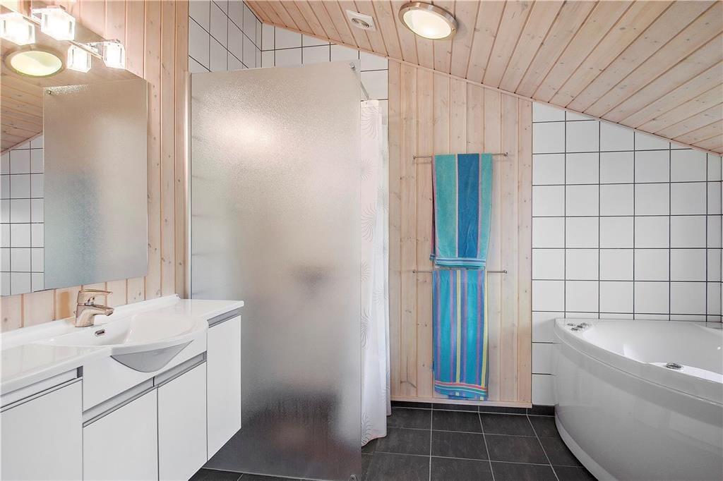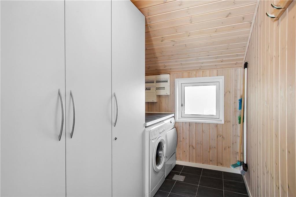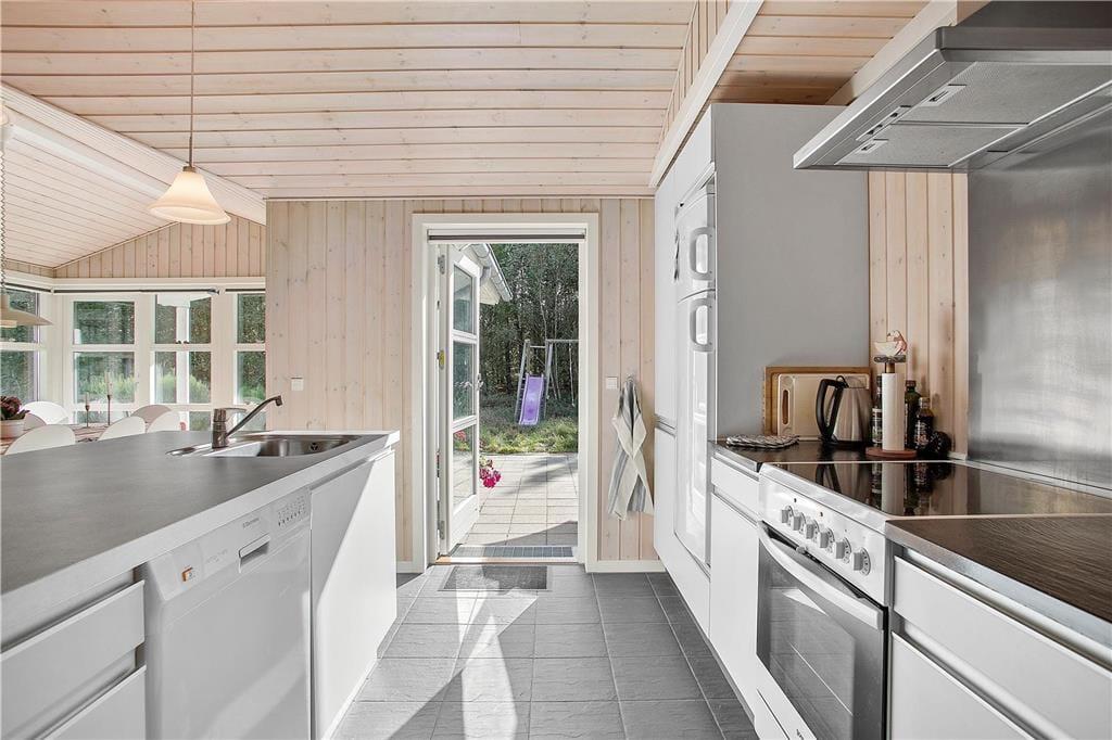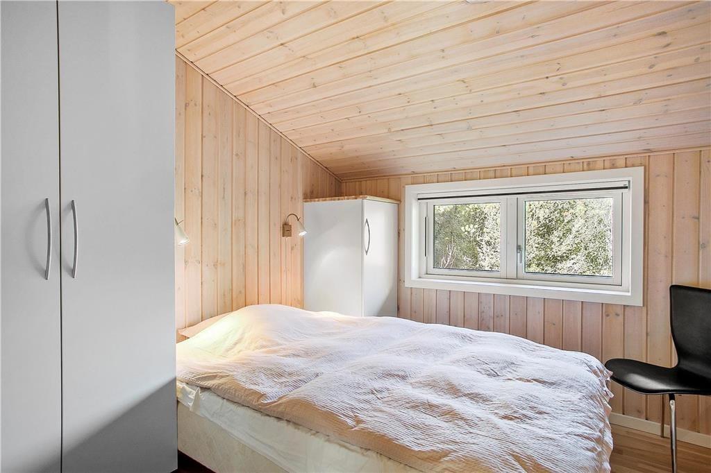 Sommerhuset har en gavmild størrelse på 105 m2, og det er opført i 2008 og siden flot vedligeholdt. Og som et moderne kvalitetsbyggeri er det fuld af lækre og komfortable detaljer: For eksempel er der en luft-til-luft-varmepumpe i stuen, mens en anden varmepumpe opvarmer gulvvarmen, som findes i både køkken, bryggers, gang og på de to badeværelser. Herlighedsværdien øges bestemt også af spabadet, som er installeret på det største badeværelse – her kan man nemt få flere timer til at gå med rendyrket afslapning. Stemningen er lys og indbydende i alle rum, også på de tre gode soveværelser, men den allerdejligste plet er måske alligevel opholdsrummet, hvor stue og køkken er forenet. Her er der blandt andet brændeovn, en flot loftshøjde og store vinduespartier ud mod den grønne naturgrund, der alt sammen medvirker til at skabe en skøn sommerhusatmosfære.