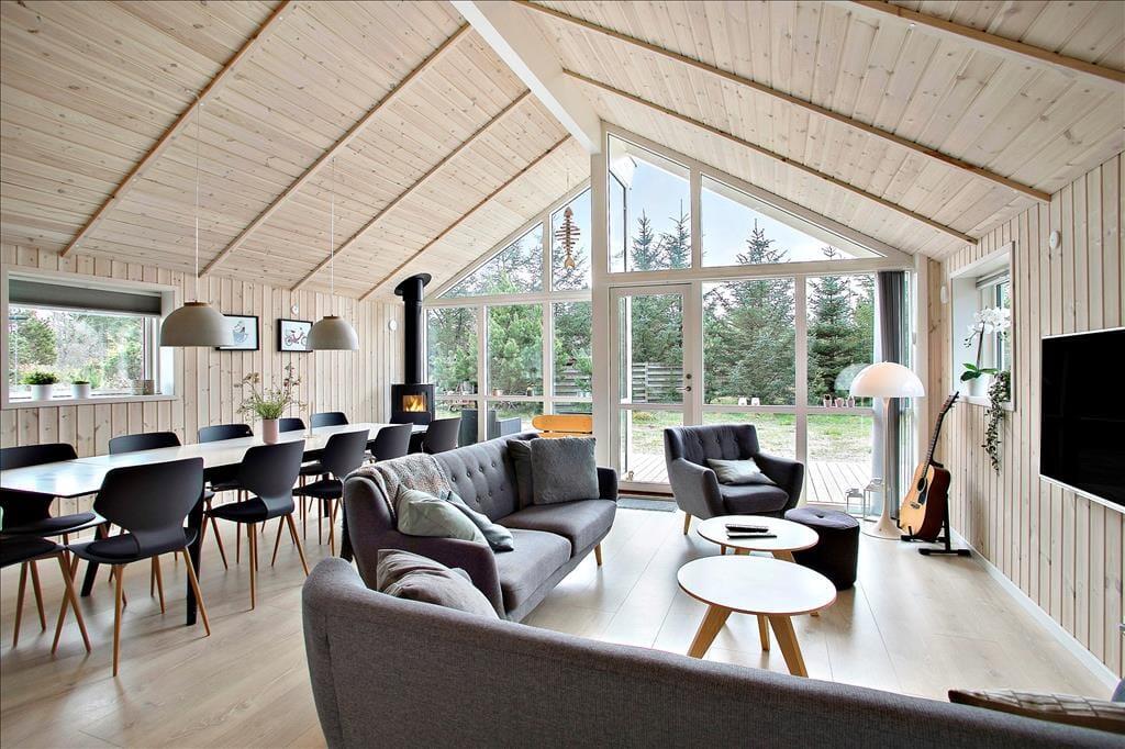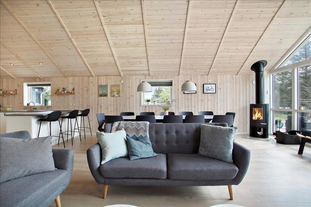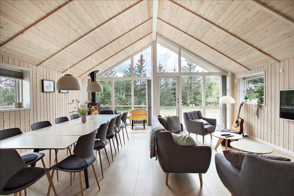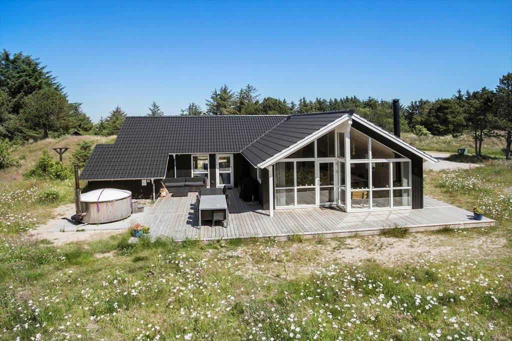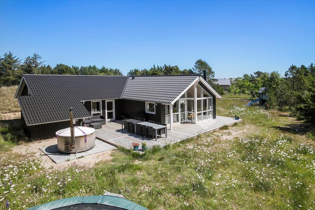 I kan se frem til at holde ferie i et hus, hvor alt bare spiller, og her er den enkle og komfortable indretning en fryd for øjet. En af de lækre detaljer, der får herlighedsværdien til at stige, er det flotte, runde spabad, der ligger sammen med en sauna på det største af husets to badeværelser. Brændeovnen, den åbne køkkenafdeling og det kæmpe vinduesparti i gavlen er noget af det, der gør det til en behagelig oplevelse at bruge tiden i stuen – når I altså ikke hygger jer i aktivitetsrummet med at spille pool, PS4, dart eller noget helt fjerde. Er det sengetid, kan I gå til ro på de fire soveværelser, og som supplement er der for øvrigt også en sofasofa i aktivitetsrummet, så huset i alt kan rumme 10 feriegæster.