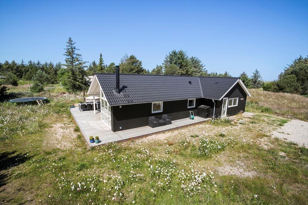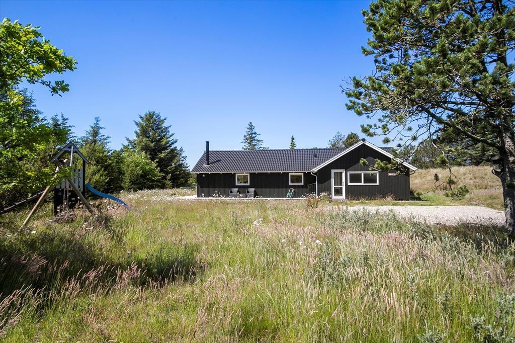 Sommerhusets 1.648 m2 store grund ligger godt placeret på en lukket vej. Derfor har I fred og ro omkring jer, når I spiser solskinsfrokost på terrassen, leger i legetårnet og sandkassen eller slapper af i det lækre vildmarksbad. Netop vildmarksbadet er en herlig måde at slappe fuldstændigt af og komme i kontakt med de smukke naturomgivelser i stort set al slags vejr.