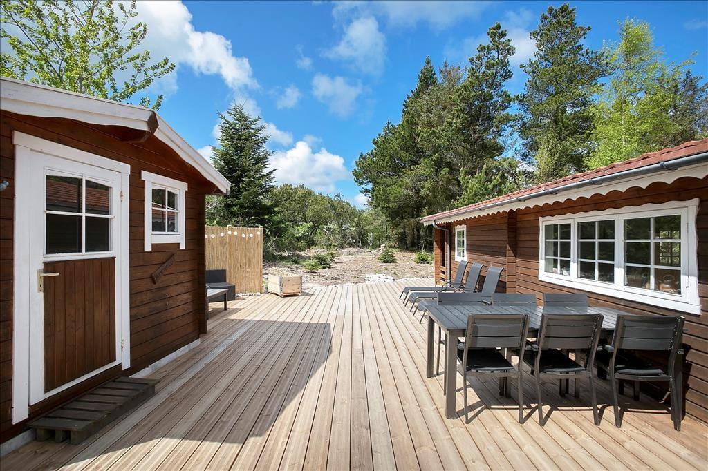 Huset ligger på en 1235 m2 stor naturgrund, som er dejligt afskærmet af træer og randbeplantning. Huset omkranses af en ny stor terrasse, som giver suveræne betingelser for at nyde de varme sommerdage under åben himmel. Her er utroligt fredfyldt, og den omgivende natur sætter den ideelle ramme for at dase i solen eller slappe af med en krimi i en liggestol. Flere dele af terrassen er overdækket, så her kan I stadig nyde udelivet, selvom det skulle dryppe lidt fra oven.