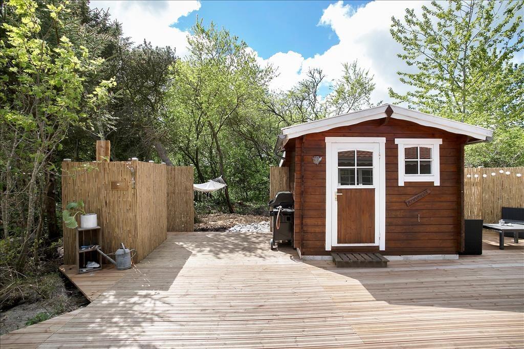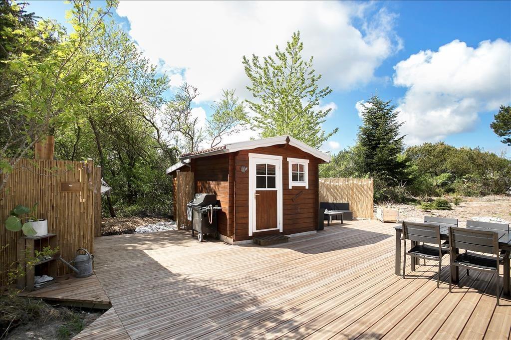 Hyggelig indretning, stor solterrasse og naturskøn beliggenhed. Det er blot tre af kvaliteterne ved dette charmerende sommerhus, som ligger på en dejlig naturgrund få minutters gang fra Thorup Strand.