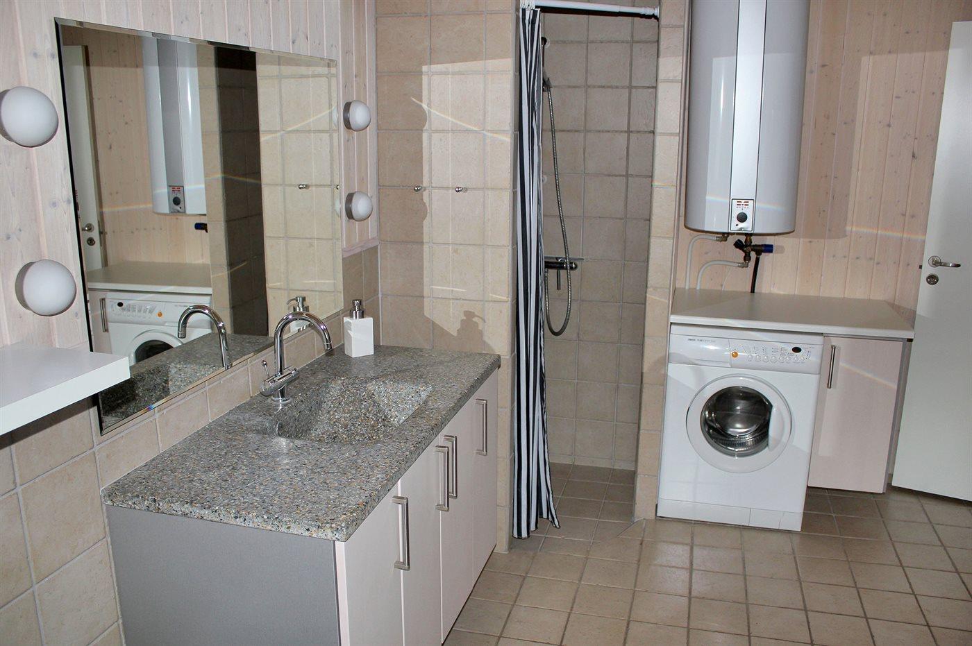 Der er 1 badeværelse med bruseniche og 1 toilet.. Der er gulvvarme på 1 badeværelse. I saunaen er der mulighed for afslapning.