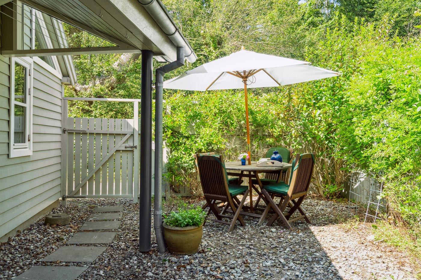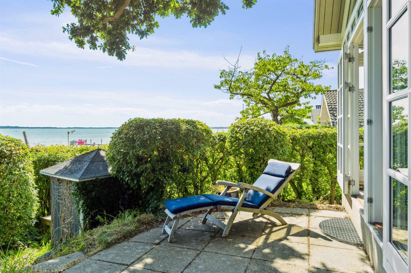Både fra huset og fra det sydvendte terrasseområde foran huset, kan udsigten ud over farvandet imellem Thurø og Tåsinge/Langeland nydes. Bag huset er der et hyggeligt lukket gårdhavemiljø, hvor både annekset ligger og adgangen til husets bad og toilet befinder sig.