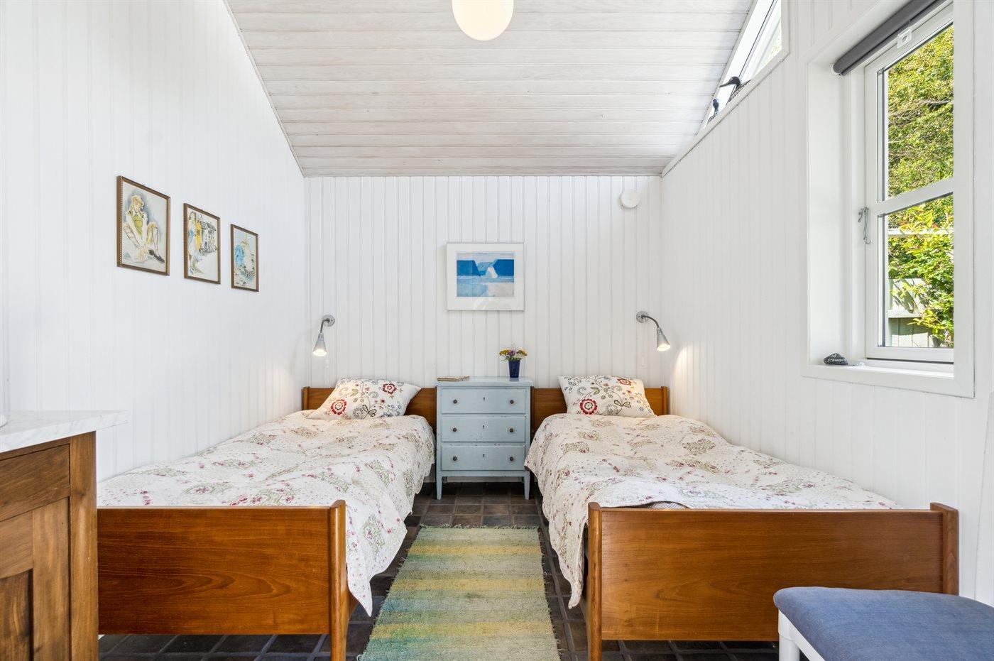 Der er i alt 2 soveværelser. Sovepladserne fordeler sig på: 2 sovepladser i enkeltsenge. 2 sovepladser i køjeseng. 2 af disse sovepladser befinder sig i et anneks. I annekset er der gulvvarme.