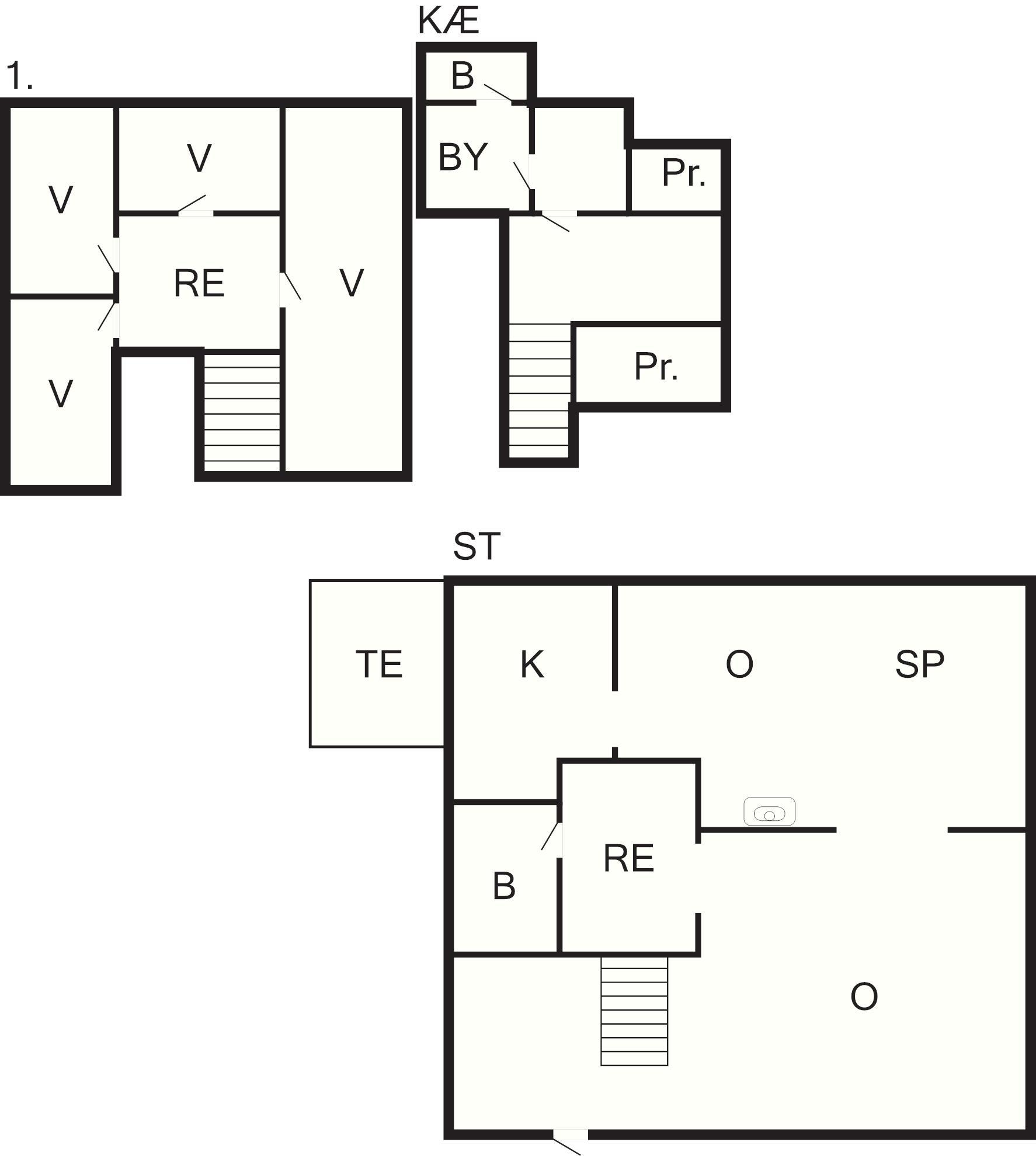 Husets øvrige sovepladser fordeler sig på fire soveværelser på 1. sal.