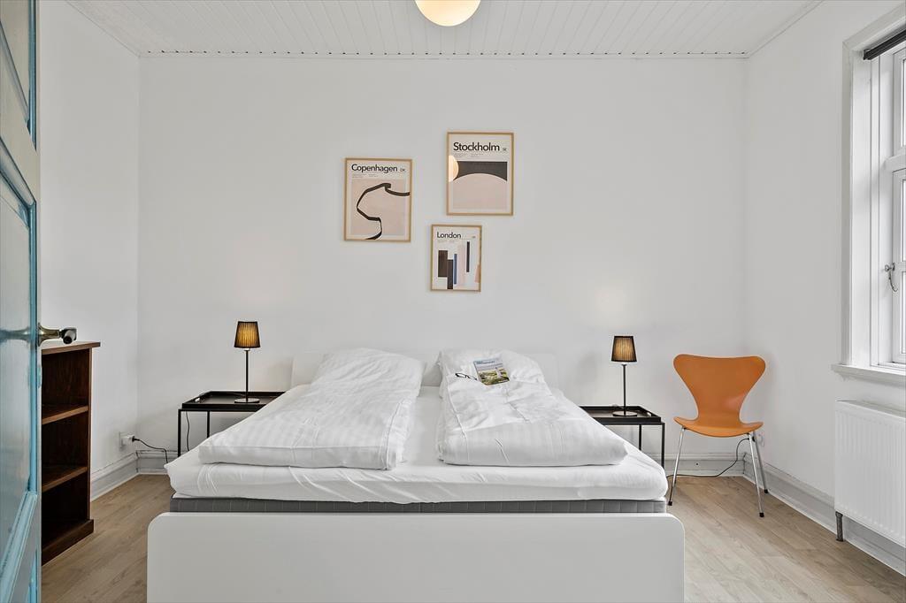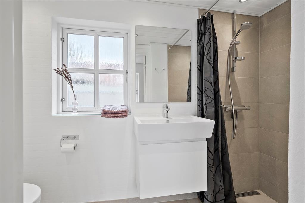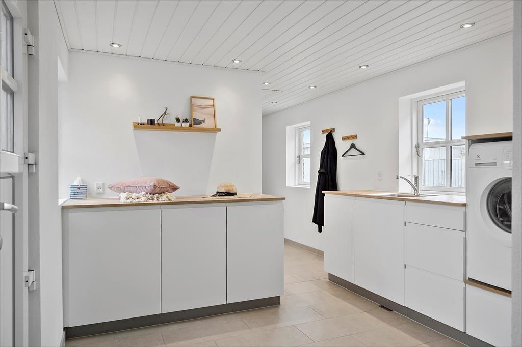 Sommerhuset fordeler sig over to plan og byder på en lys og harmonisk indretning med masser af personlighed. Den maritime stil går som en rød tråd gennem rummene, hvor hvide vægge, blå nuancer og små detaljer som drivtømmer og båd-inspirerede elementer skaber en stemning, der kalder på hav og sommer. Stueetagen byder på et indbydende opholdsrum, hvor du let kan slå dig ned i sofaen med en god bog eller samles med familien omkring spisebordet. Køkken og stue ligger i åben forbindelse, så det er nemt at være sammen – uanset om det er madlavningen, morgenkaffen eller brætspillet, der er i fokus. På førstesalen får du mere plads til at finde ro og lade op – og uanset om det er til middagssøvn eller aftenhygge, er der en afslappet stemning, der gør det nemt at føle sig hjemme.