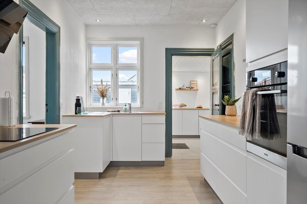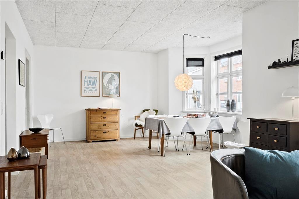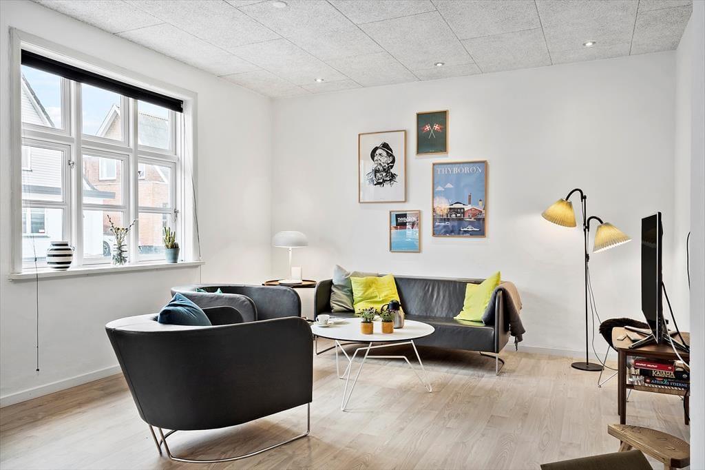 Hvis du drømmer om et ferieophold, hvor stemningsfuld indretning, maritim atmosfære og kort afstand til Vesterhavet går hånd i hånd, er sommerhuset på Vesterhavsgade 34 i Thyborøn et helt oplagt valg. Her bor du midt i den autentiske vestjyske kystby – i et sommerhus, der på fornem vis forener lys, hygge og moderne komfort. Huset ligger på en dejlig lukket grund med god plads til både leg og afslapning, og med kun 200 meter til stranden er du aldrig langt fra en frisk dukkert eller en lang tur i vandkanten.