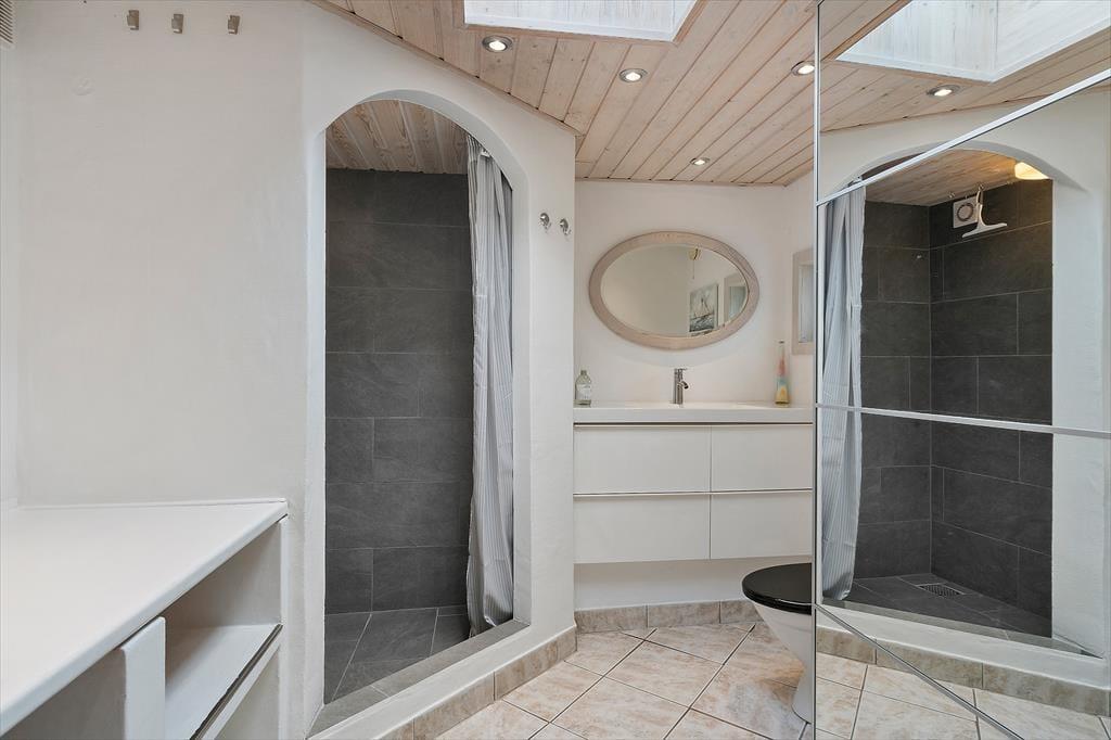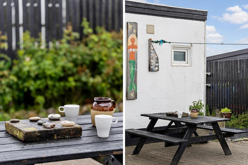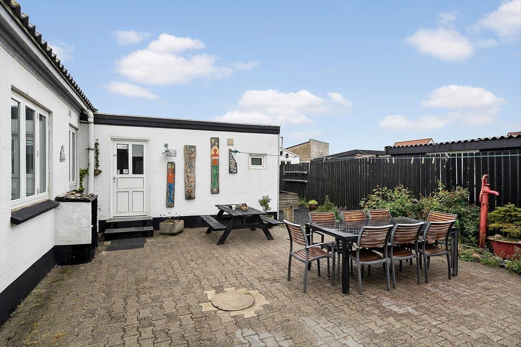 Sommerhuset byder på en dejlig, lukket terrasse, hvor I både kan slikke sol og spise aftensmad i læ for vinden. Her kan børnene lege trygt, og hundene kan snuse rundt i det fri uden at I skal bekymre jer. Terrassen indbyder til afslappede morgener med friskbrygget kaffe, mens duften af havet blander sig med lyden af måger og bølger i baggrunden. I kan tænde op i grillen, læse en god bog i solen eller bare nyde stilheden og hinandens selskab. Med kun 150 meter til stranden er det oplagt at tage håndklædet over skulderen og snuppe en hurtig dukkert i Vesterhavet – eller måske samle skaller og bygge sandslotte med de mindste.