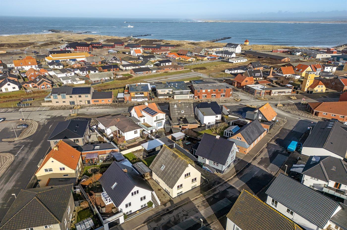 Autentisk feriehus i Thyborøn med aktivitetsrum og tæt på hav og fjord.