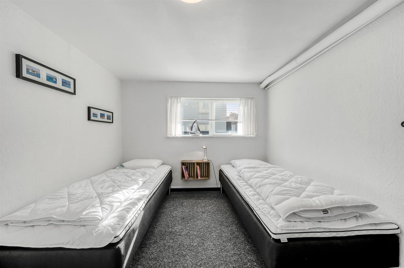 Der er i alt 4 soveværelser. Sovepladserne fordeler sig på: 6 sovepladser i dobbeltsenge. 2 sovepladser i enkeltsenge. 2 sovepladser i sovesofa (enkelt). 2 af disse sovepladser befinder sig i aktivitetsrummet.