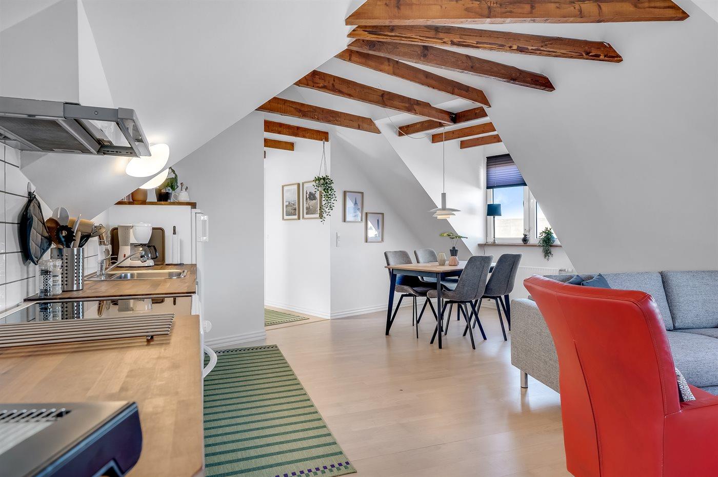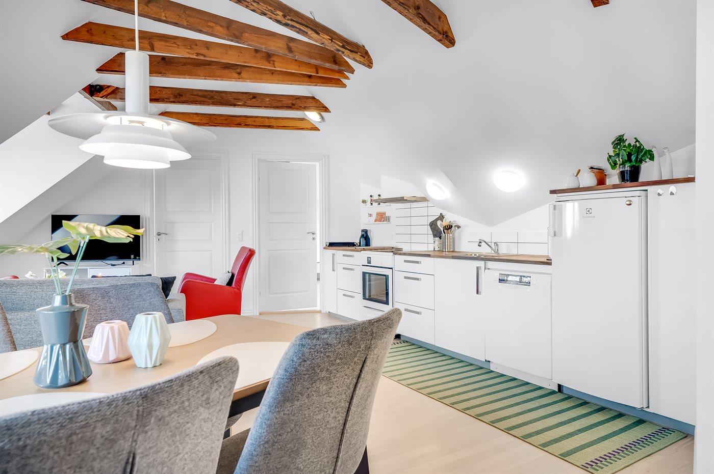 Køkkenet er udstyret med 1 køleskab. Der er 4 induktionskogeplader, varmluftovn samt opvaskemaskine.