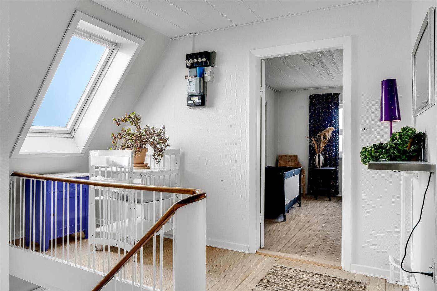 Bemærk: En stejl trappe fører op til husets 1. sal.