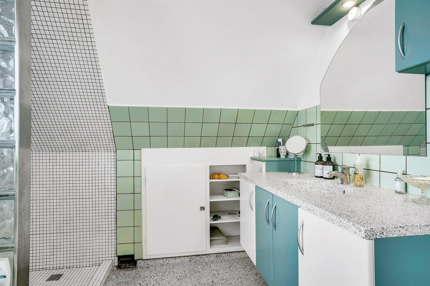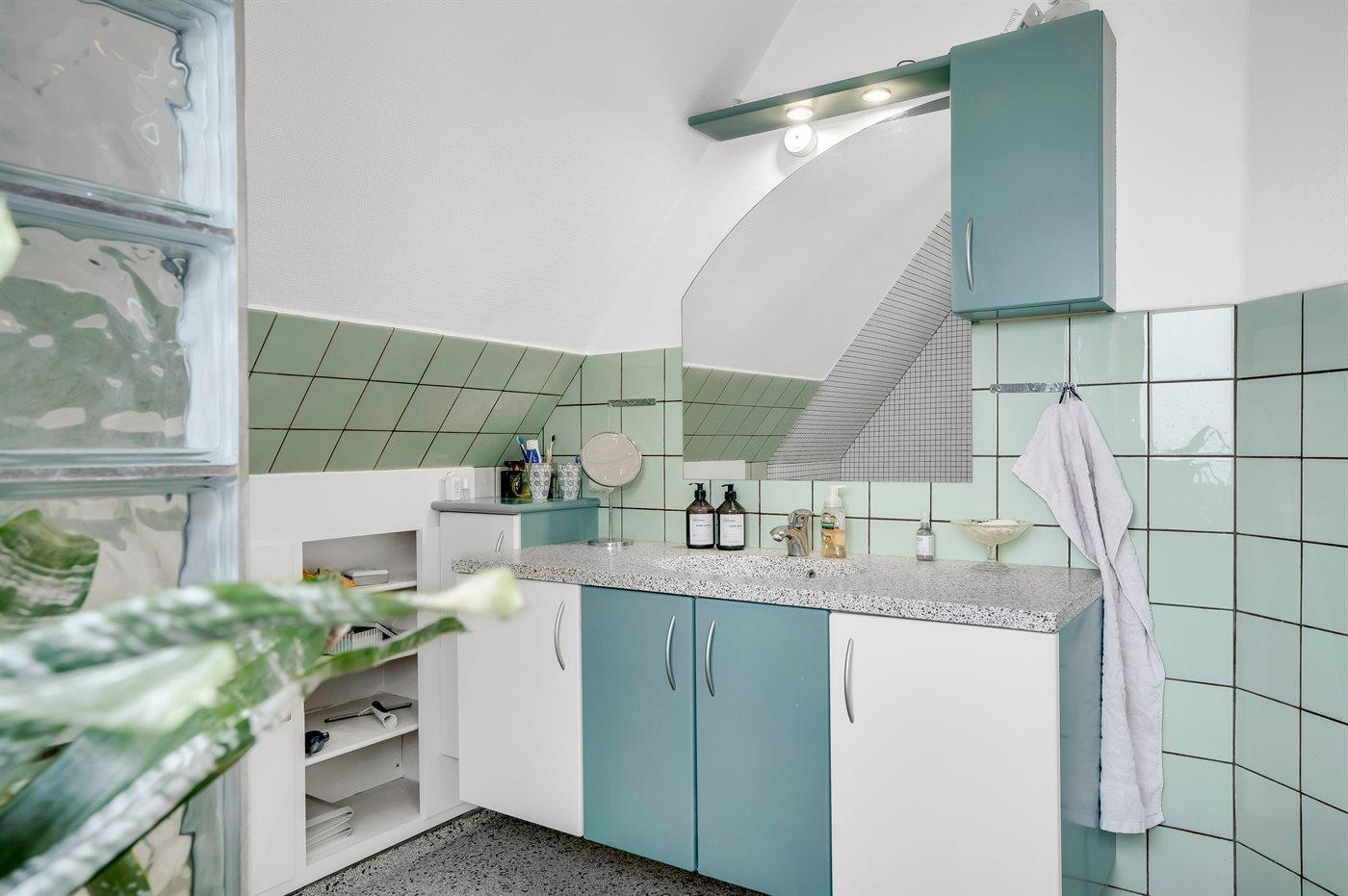 Der er 1 badeværelse med bruseniche og 2 toiletter, heraf 1 gæstetoilet.