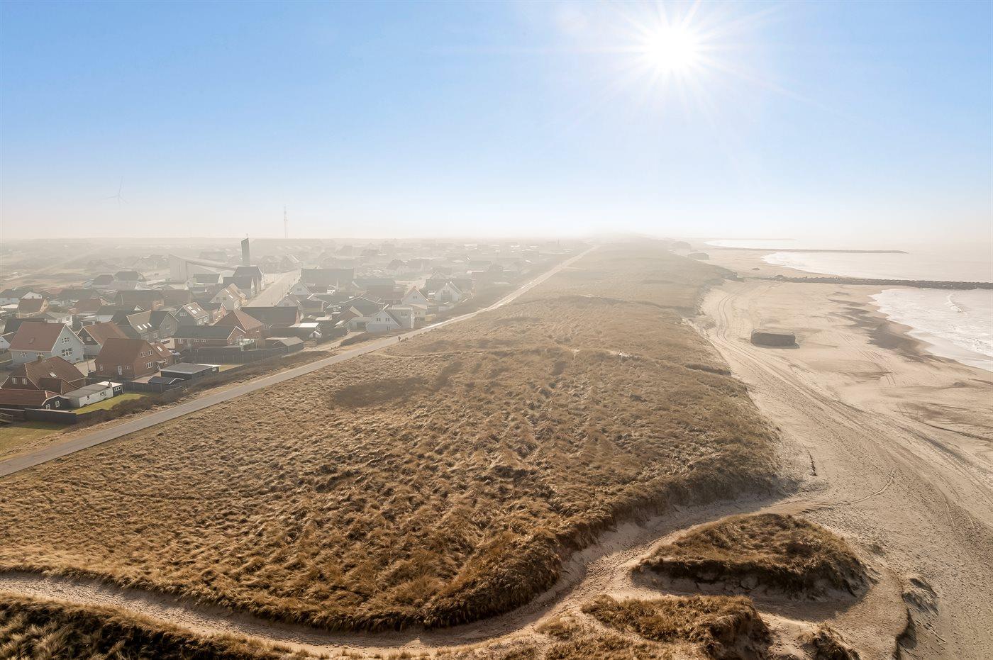Ferieboligen er beliggende på en 305 m² stor grund. Grunden er indhegnet. Der er 150 m til havet. Nærmeste forretning er beliggende i en afstand af 500 m. Til ferieboligen hører lukket terrasse. Der er installeret stik til opladning af elbil.