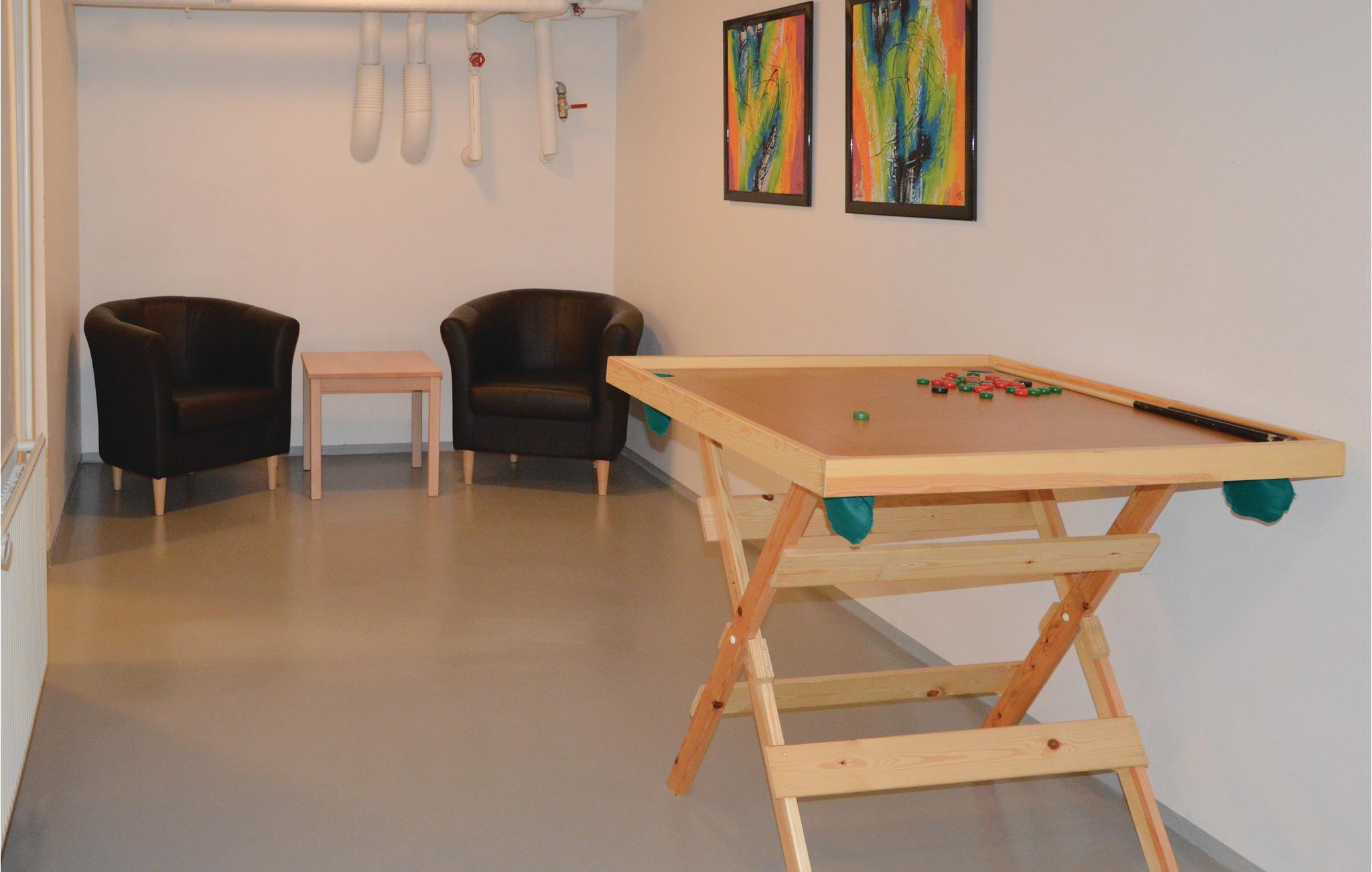 Praktisk beliggende ved soveafdelingerne er der desuden 2 mindre køkkener i hver sin ende af huset. I den velindrettede og indbydende stue er der opsat stort fladskærms-TV, og parabolen sørger for både skandinaviske og tyske kanaler, bl.a. Viasat til de sportsinteresserede. Der er naturligvis også gratis internetadgang. Husets arkitektur danner helt naturligt en masse udendørs lækroge, indrettet med magelige havemøbler. Her kan I slappe af og nyde solen eller tage et spil petanque.