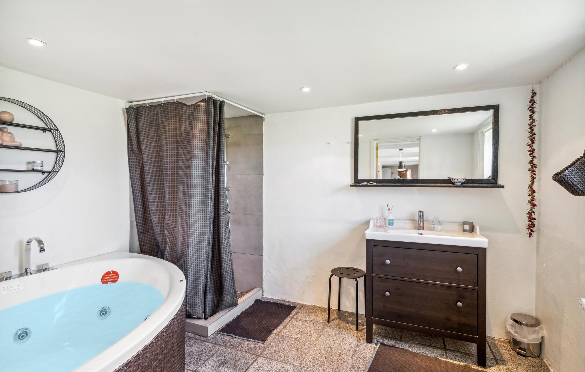 Tilbring en oplevelsesrig ferie i dette feriehus, Den gamle Strandfogedgaard, fra 1848. Huset charmerer med sin historie og overrasker indenfor med et moderne design til en ubekymret ferie. Nyd opholdsstuen med spil og sjov eller lav mad sammen i køkkenet. Efter en lang dag kan I forkæle jer selv i spabadet og senere nyde dejlige timer på terrassen, mens jeres børn tumler på græsplænen. Der er kun få skridt til stranden, hvor I kan bade i det friske Vesterhav eller gå lange ture.