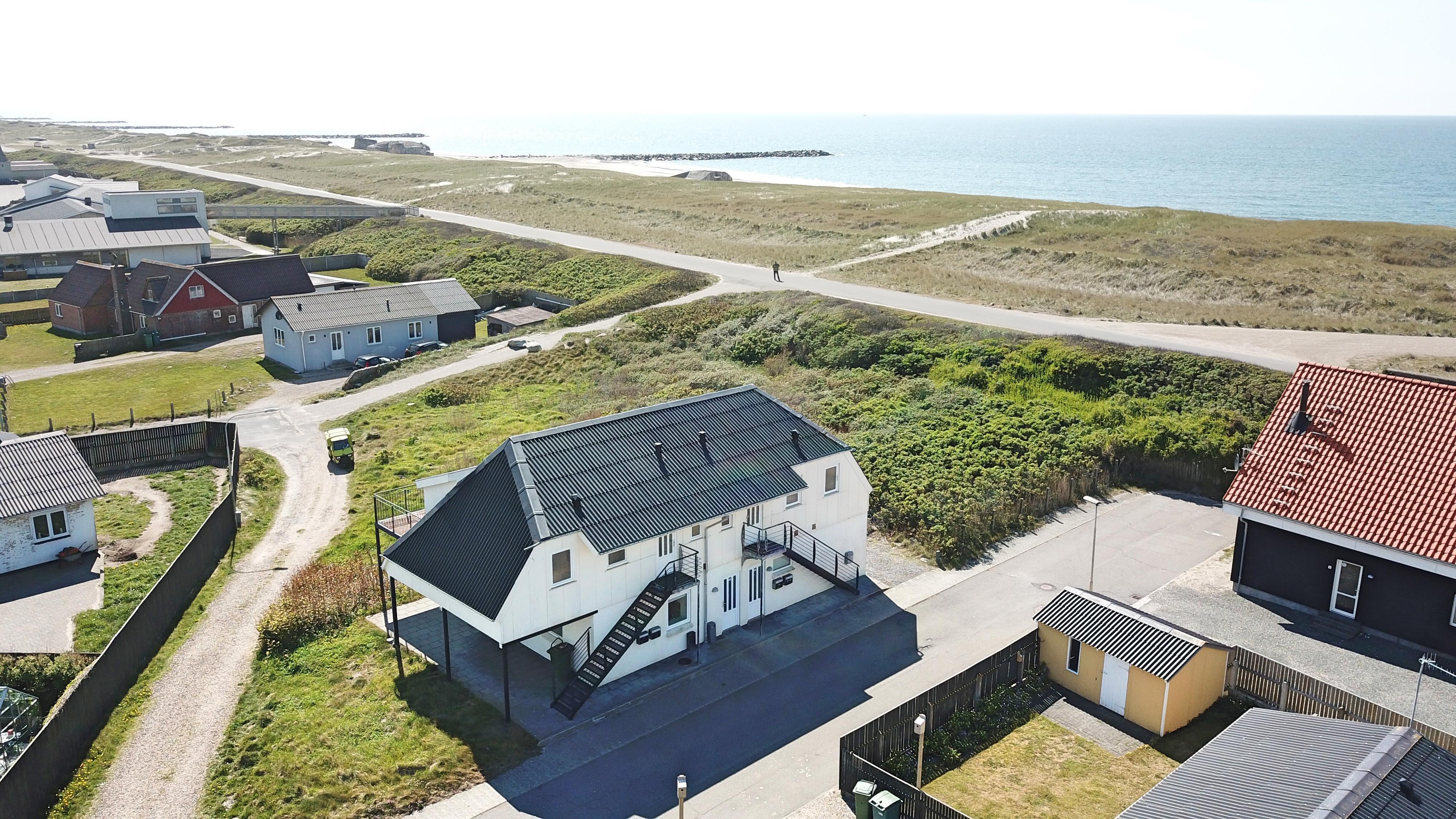 Stor, velbeliggende bygning med 4 lejligheder (2 på 2 sal og 2 i stueplan). Lejlighederne har gratis W-LAN med begrænset og lav adgang og ligger kun 50m fra de høje klitter direkte ved Vesterhavet.