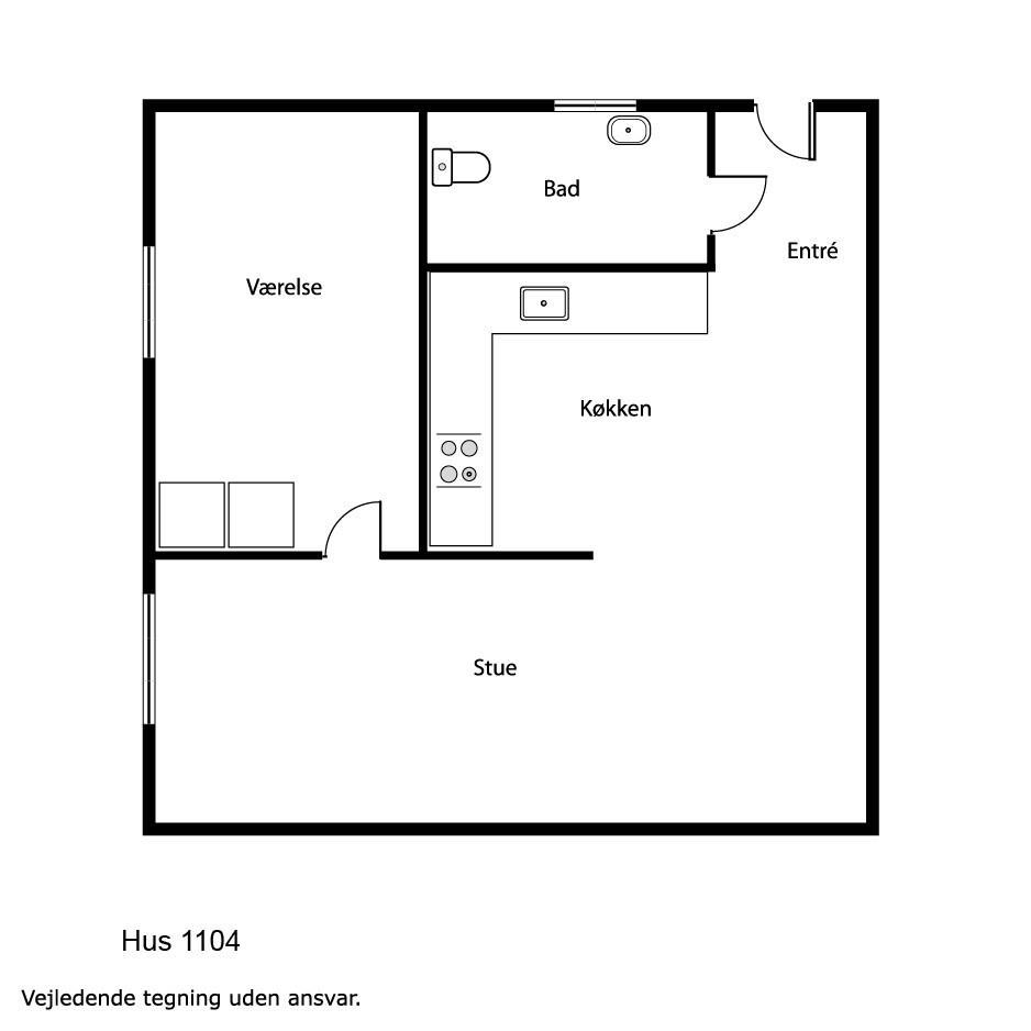 Ca. 40m2 stor lejlighed i stueplan. Indgang gennem en lille entré til en kombineret opholdsstue og køkkenhjørne. Opholdsstue med dobbelt-sovesofa, TV med tyske og danske kanaler, CD/Radio og spisebord. Køkkenhjørne med komfur med glaskeramiske kogeplader, emhætte, mikroovn og køleskab med lille fryseboks. 1 soveværelse(1DS) . Badeværelse med toilet, håndvask og brusemulighed. Ikke ryger lejlighed. Max 2 husdyr tilladt.
