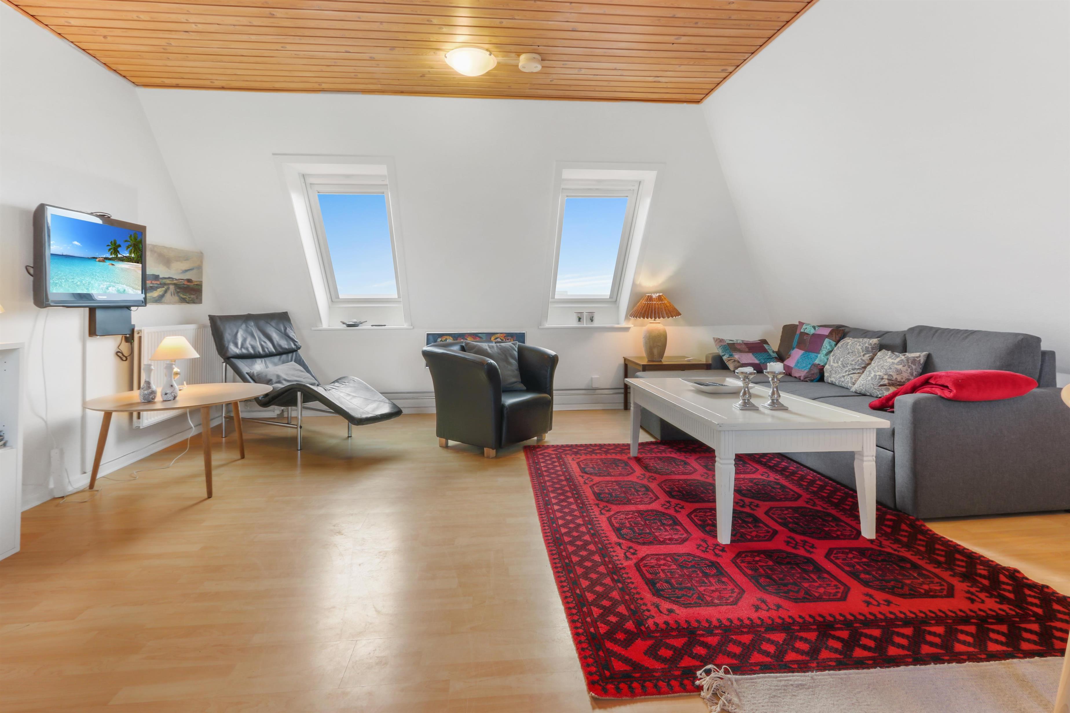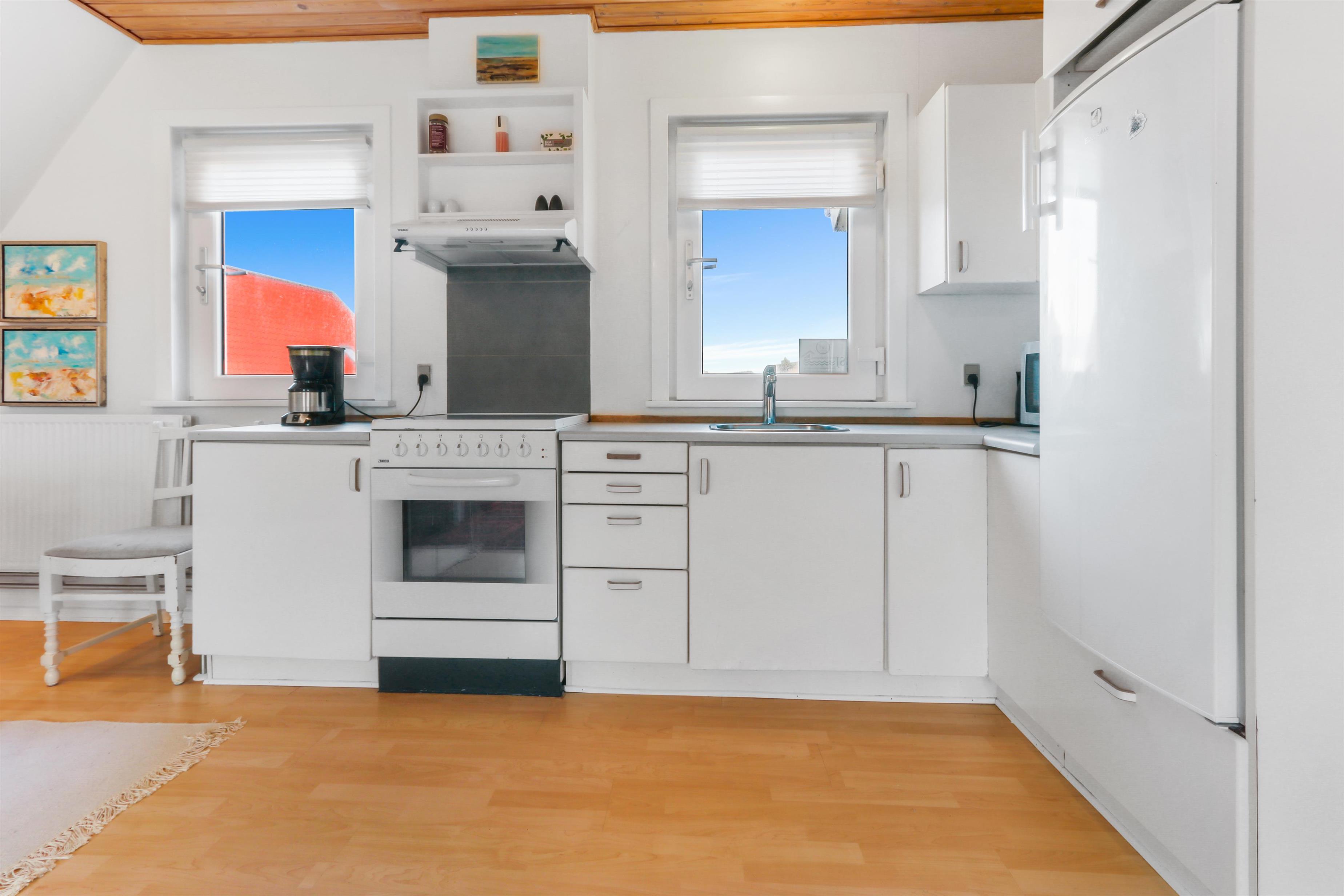 Fra opholdsstuen er der en fantastisk udsigt til de høje klitter i Thyborøn. Fra lejligheden kan alle Thyborøns attraktioner nås i gåafstand. Tag en havnerunde og nyd livet på havnen, besøg fiskeriauktionen i sæsonen eller prøv en af Vesterhavets mest børnevenlige badestrande lige før Vesterhavet bliver til Limfjord blot 1500 meter fra huset. Stranden lige op til huset udmærker sig ved at være mere egnet til lystfiskeri, snorkling og dykning samt flyve med drage og samle rav. Her kan man også i timevis studere bunkere og sågar gå ind i mange af dem - husk lommelygte. Vandrer man fra huset under 1 kilometer mod syd kommer man til et stort fuglereservat hvor man i fred og ro kan vandre rundt og betragte naturen på alle årstider.