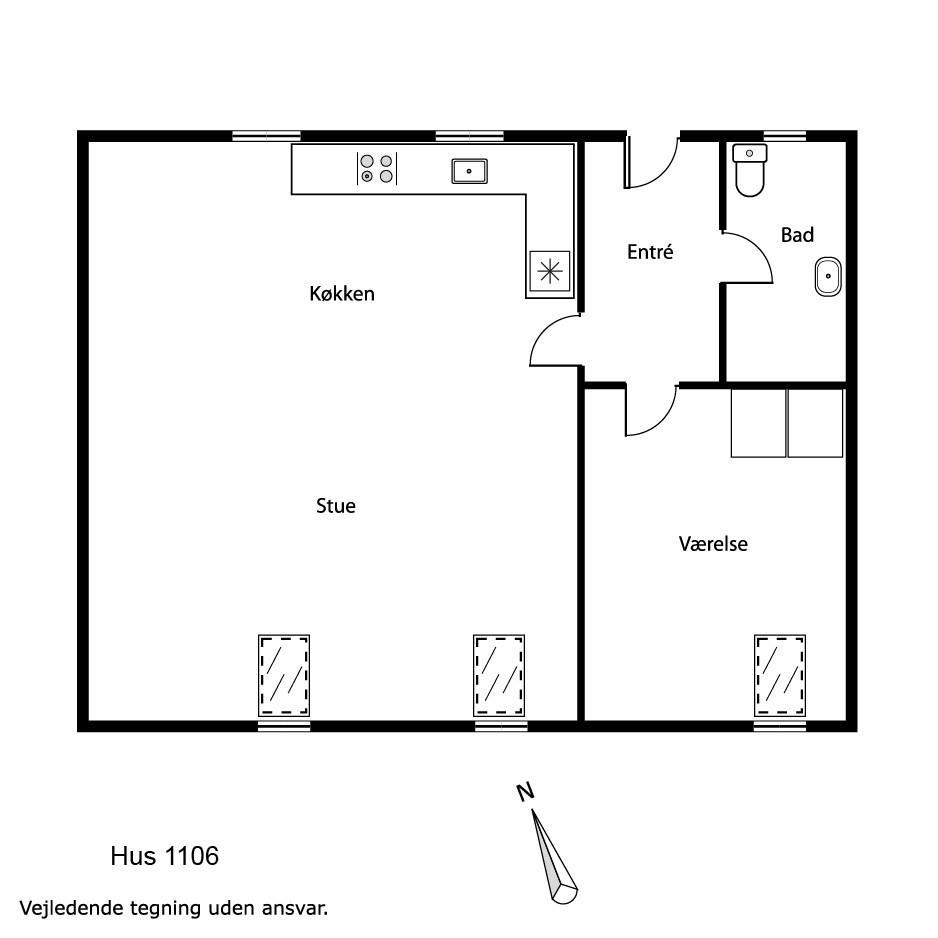 Ca. 50m2 stor lejlighed på 1 sal. Indgang gennem en lille entré til en kombineret opholdsstue og køkkenhjørne. Opholdsstue med dobbelt-sovesofa, TV med tyske og danske kanaler, CD/Radio og spisebord. Køkkenhjørne med komfur med glaskeramiske kogeplader, emhætte, mikroovn og køleskab med lille fryseboks. 1 soveværelse(1DS). Badeværelse med toilet, håndvask og brusemulighed. Ikke ryger lejlighed. Max 2 husdyr tilladt. obligatorisk rengøring