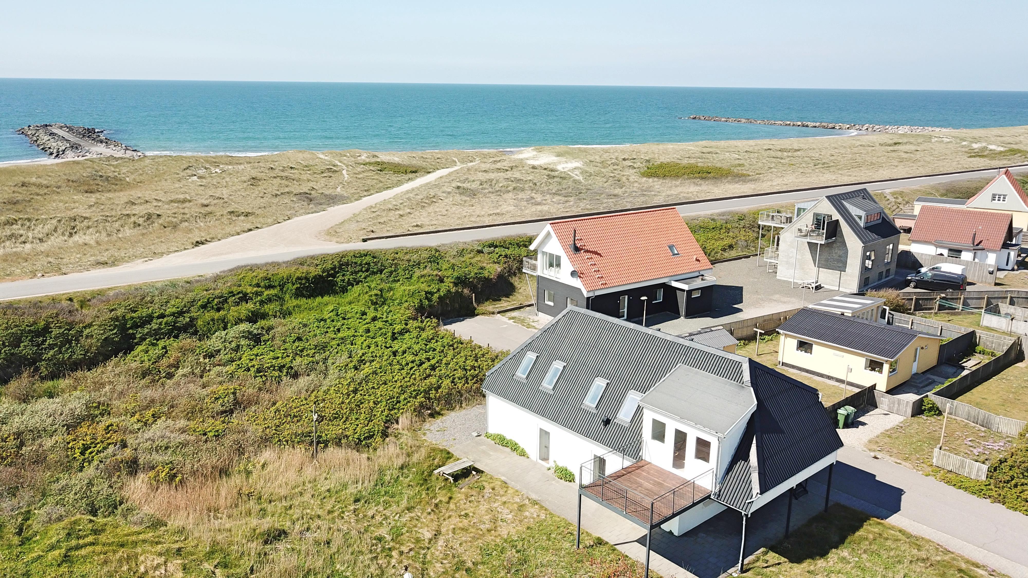 Stor, velbeliggende bygning med 4 lejligheder (2 på 2 sal og 2 i stueplan). Lejlighederne har gratis W-LAN med begrænset og lav adgang og ligger kun 50m fra de høje klitter direkte ved Vesterhavet.