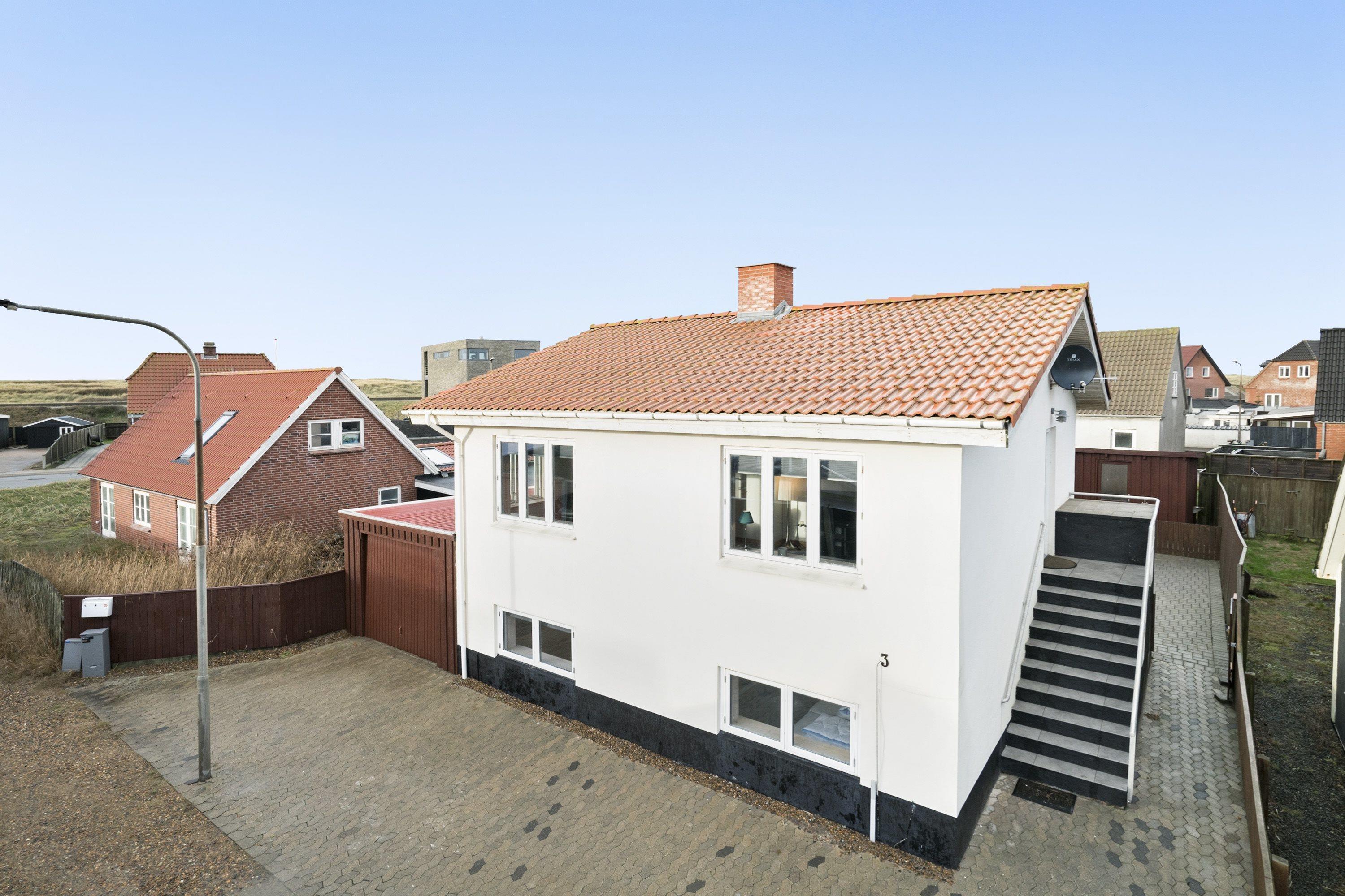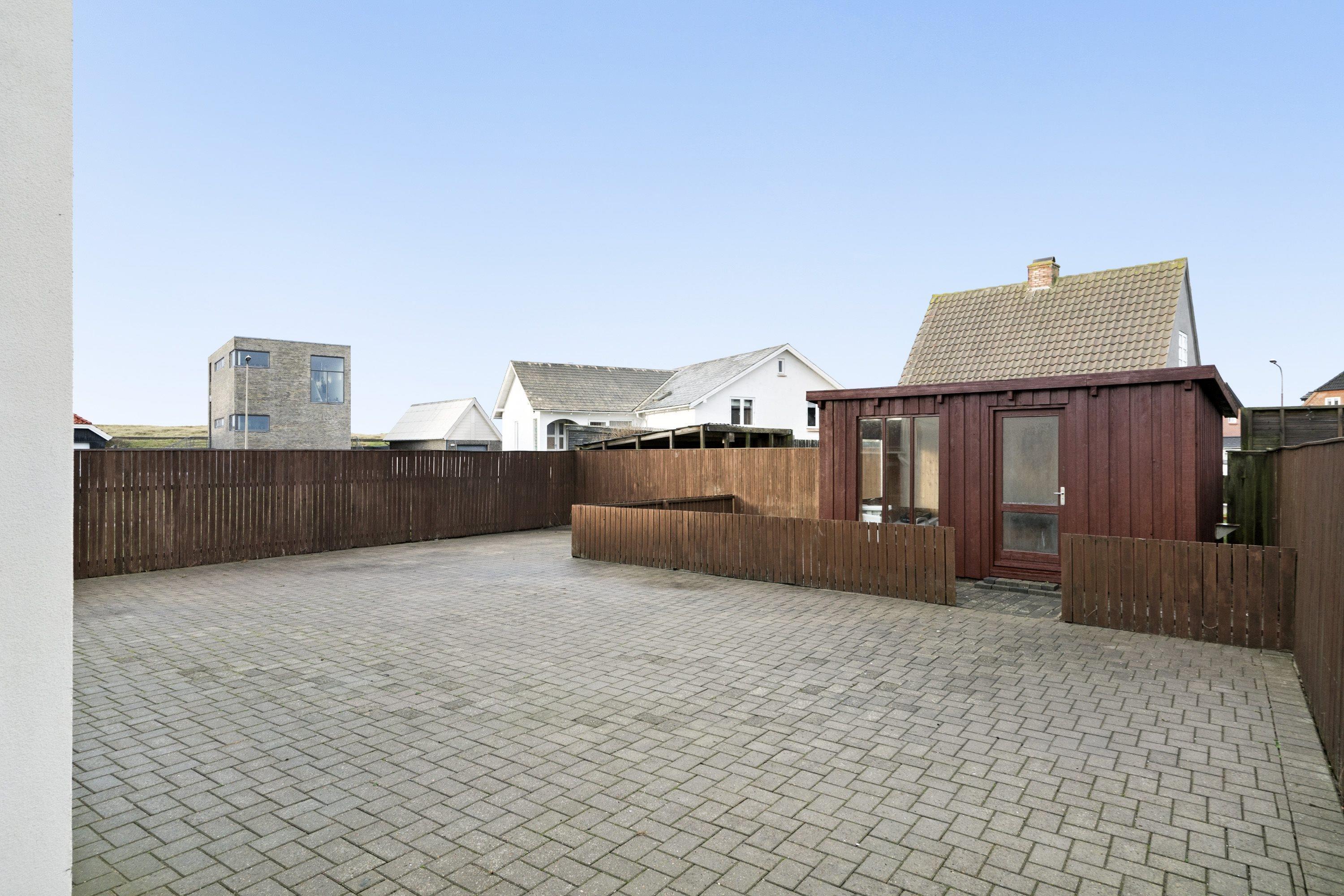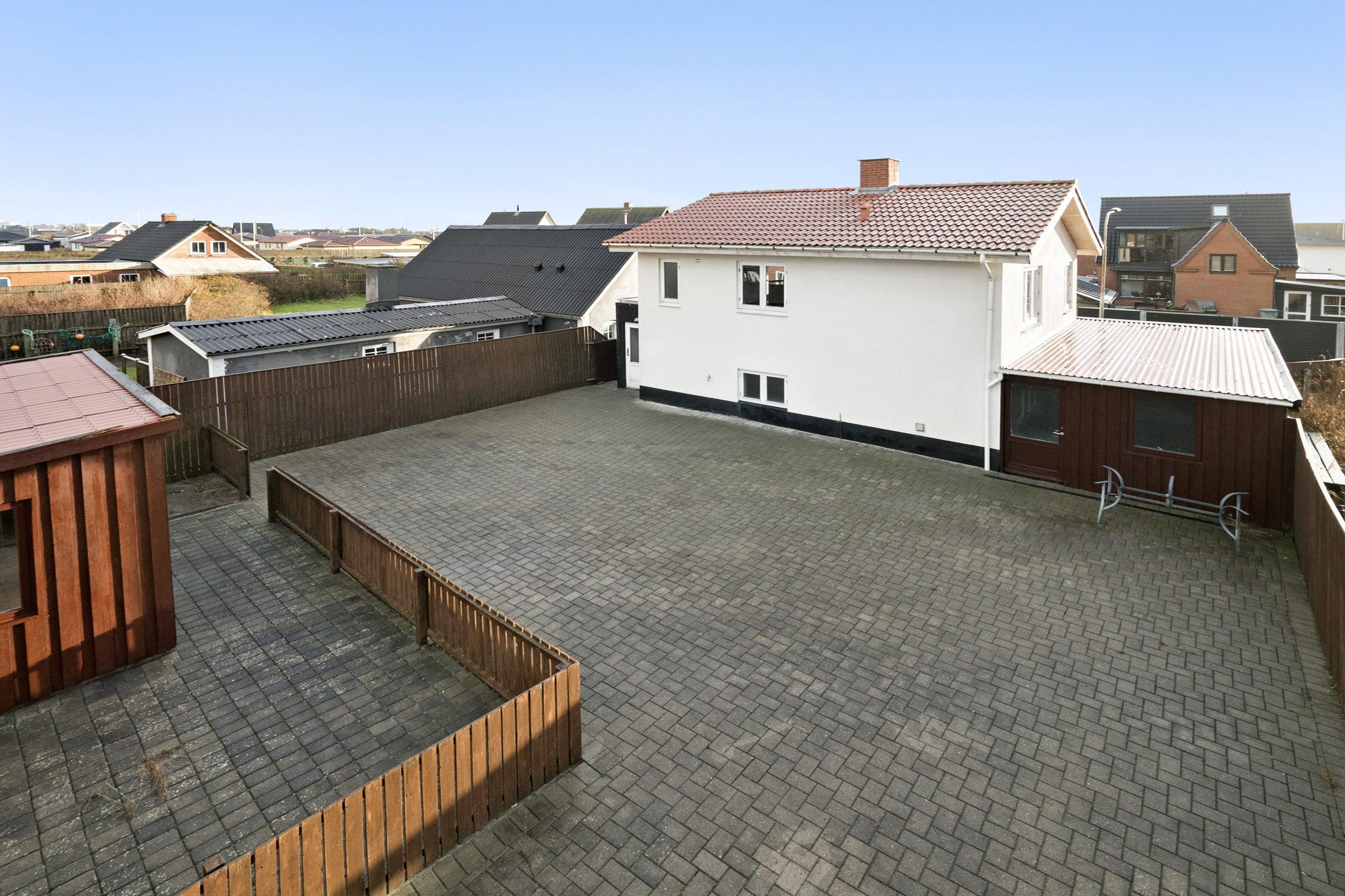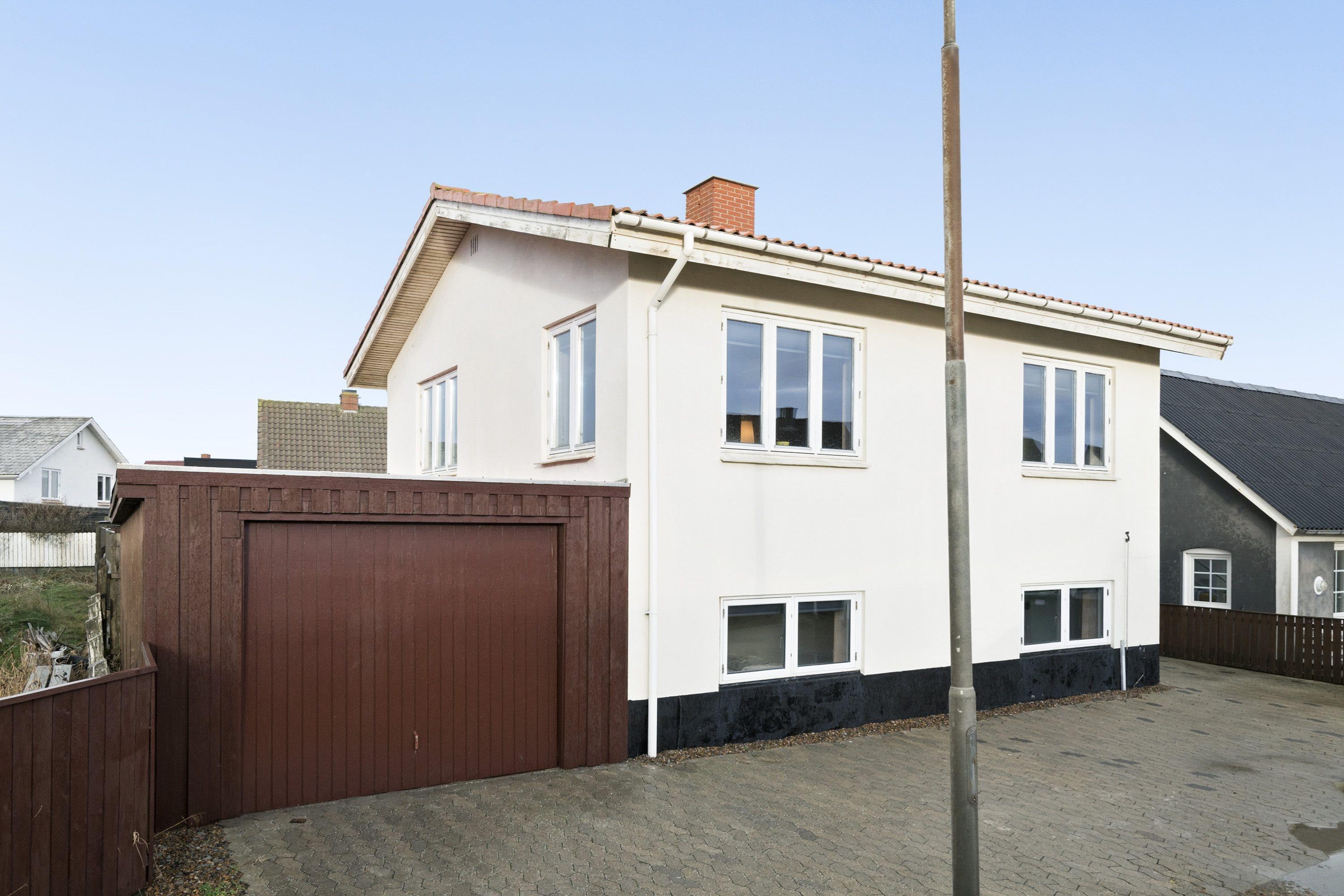 Huset ligger på en rolig sidevej. Fra både kælder og fra ingangssiden er der afgang til en stor, lukket solgård med havemøbler, grill og liggestole. Solgården er helt lukket, flisebelagt og perfekt til både børn, hunde og voksne som ønker en indhegnet gård. I solgården er der en sandkasse samt et mindre havehus med bla. siddeplads, bob og dartspil. Her kan mange timer fordrives og havemøblerne kan flyttes rundt, så solen kan nydes. Hold en hyggelig grillaften og hør på bølgernes brusen i baggrunden. Besøg Jyllandsarkvariet, Kystcenteret, Seawar Museum, inviter familien ud at spise, eller lav lækre indkøb af frisk fisk eller andre god detailvarer eller gå eller løb en tur ved Vesterhavet, som hver dag byder på nye oplevelser. Alt dette er muligt, indenfor 1000 fra huset. Et helt igennem hyggeligt hus som er pænt istandsat.