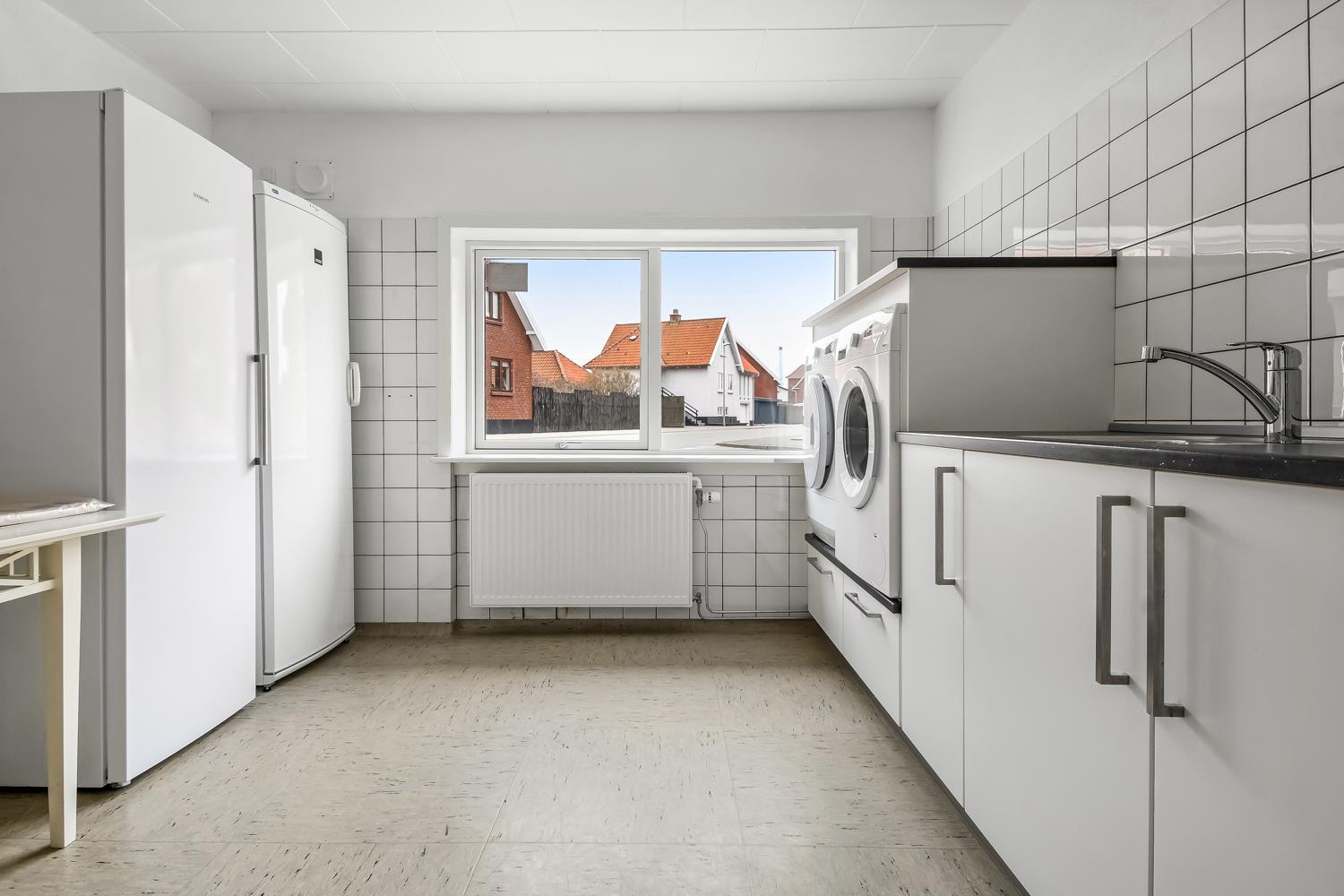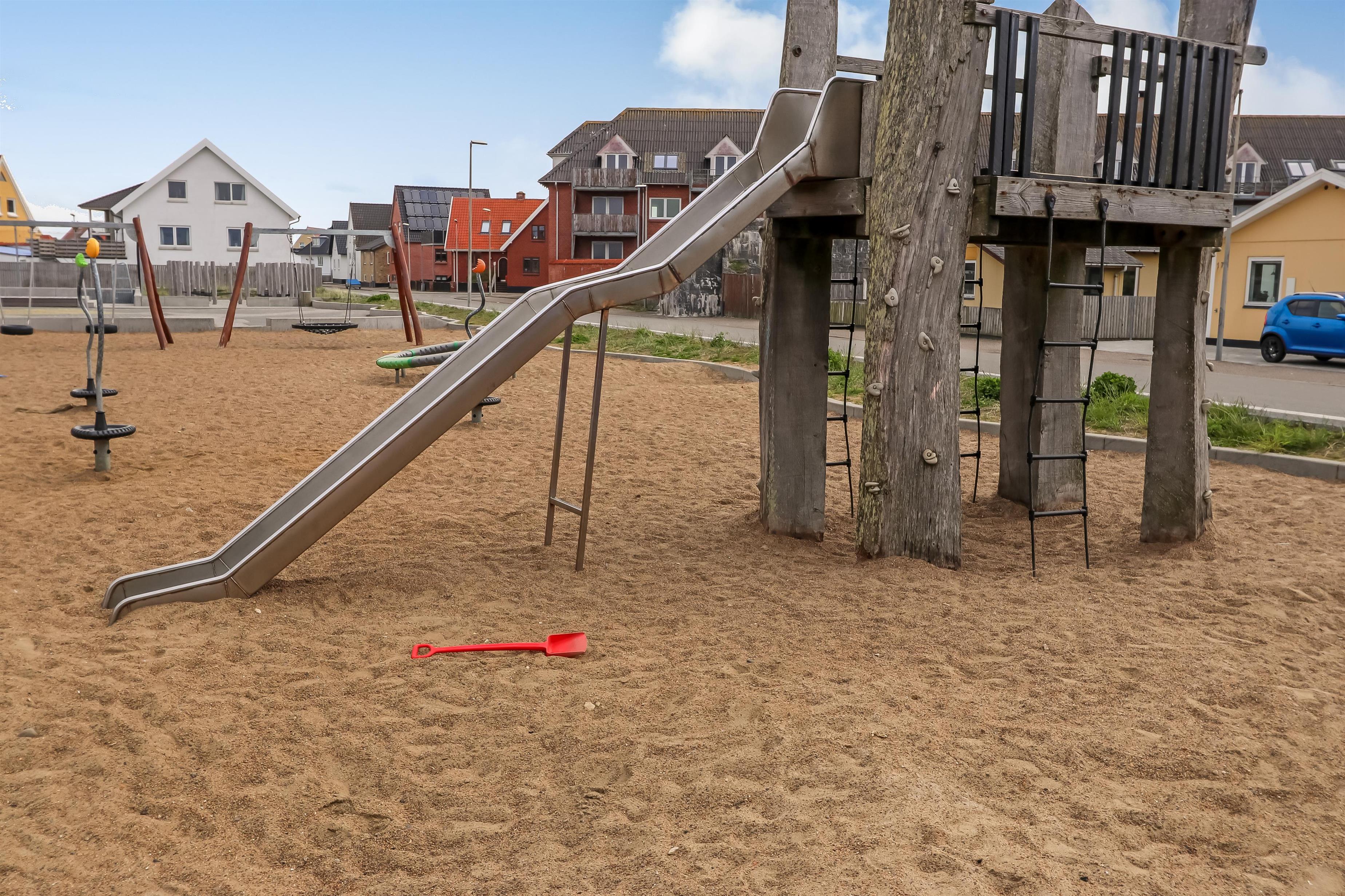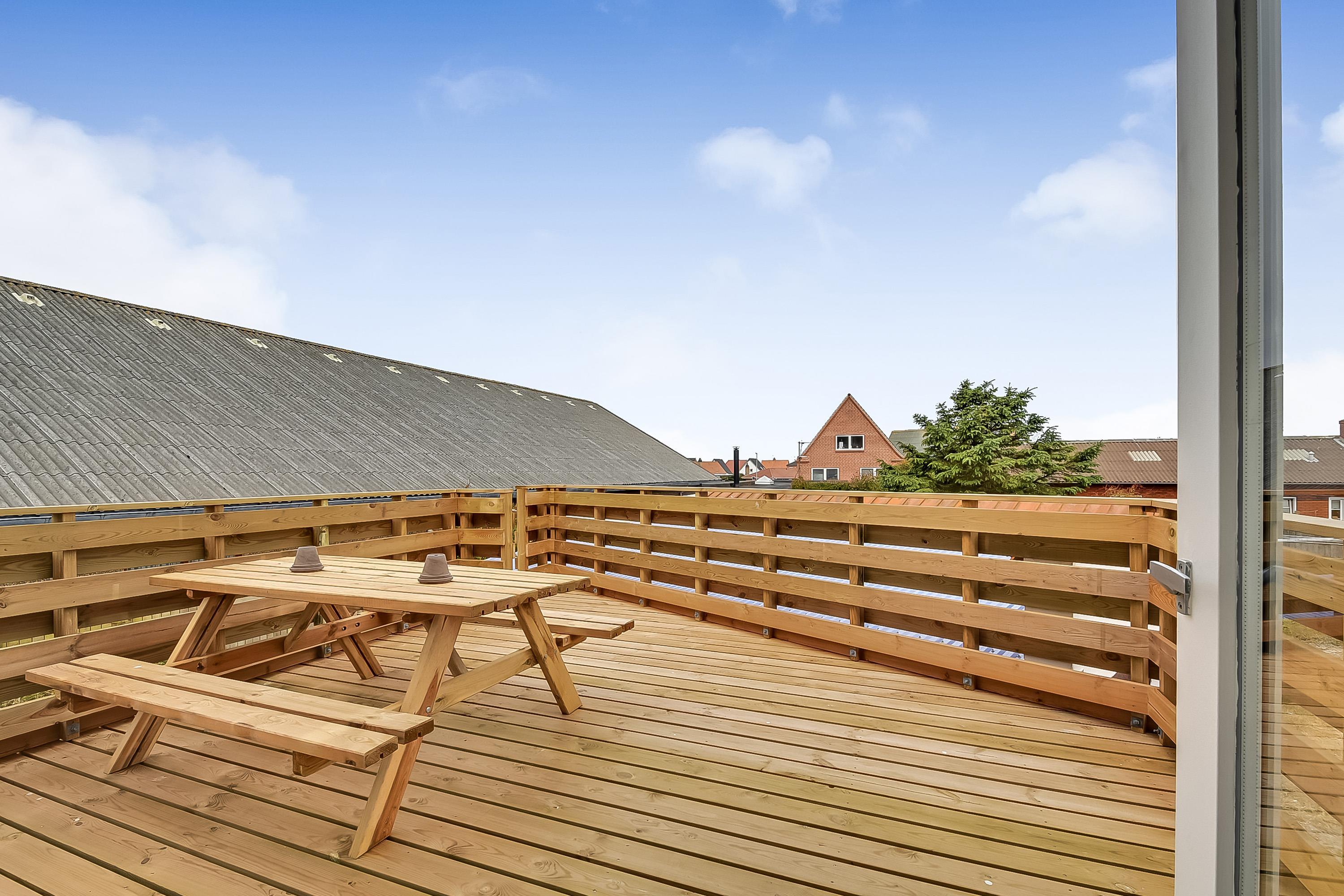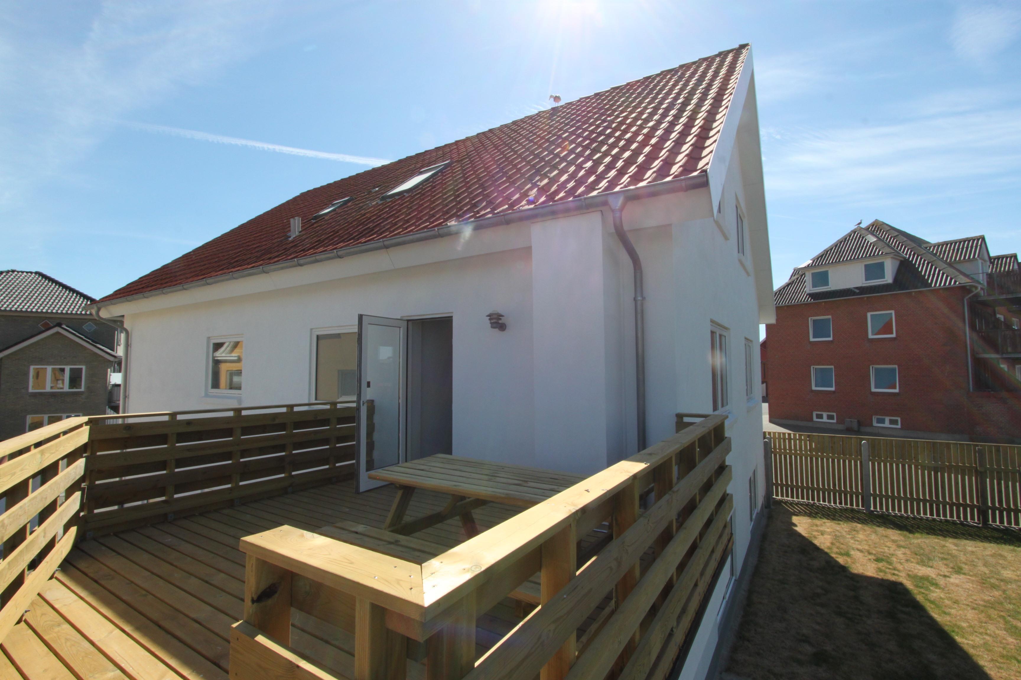 Terrasse med solvogne, havemøbler og grill. Huset ligger midt i fiskerbyen Thyborøn kun 450 m fra det brusende Vesterhav. Tæt ved huset ligger en stor, nyanlagt offentlig legeplads med massere af muligheder for sjorv og spas. Den centrale placering gør, at man også kan nå dagligvarebutikker, spisesteder samt shopping muligheder inden for få minutters gang. Thyborøn rummer en masse oplevelsesmuligheder samt aktiviteter for hele familien, bl.a. Sneglehuset, Kystcentret, Jyllands Akvariet, Sea War-museum, hyggeligt havnemiljø og lækker badestrand med blå flag. Mulighederne og rammerne for en god ferie tæt på by og Vesterhavet er til stede i dette hus.
