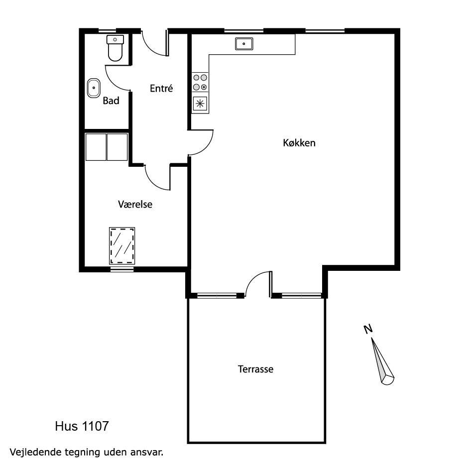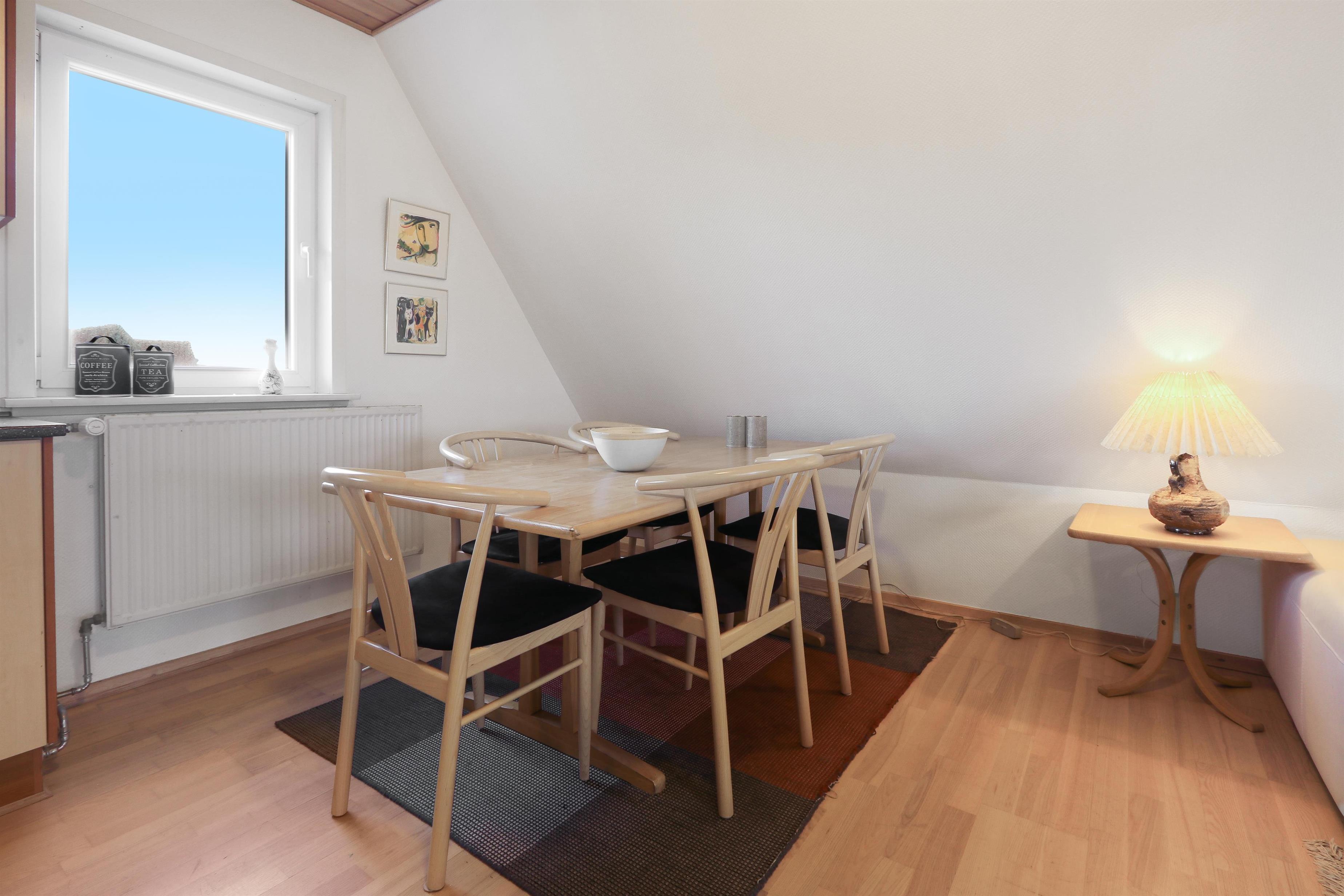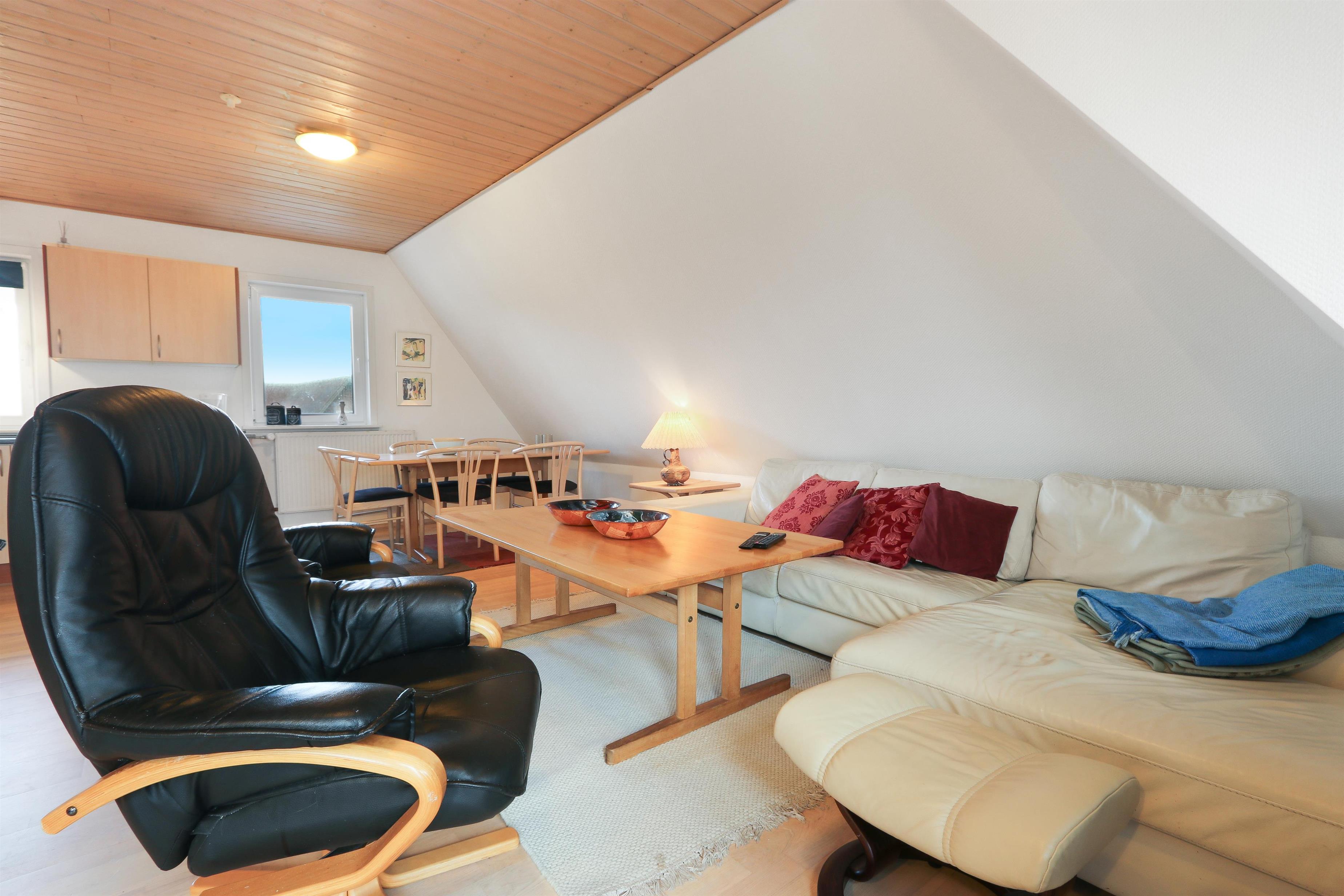 Ca. 50m2 stor lejlighed på 1 sal. Indgang gennem en lille entré til en kombineret opholdsstue og køkkenhjørne. Opholdsstue med dobbelt-sovesofa, TV med tyske og danske kanaler, CD/Radio og spisebord. Køkkenhjørne med komfur med glaskeramiske kogeplader, emhætte, mikroovn og køleskab. 1 soveværelse(1DS) . Badeværelse med toilet, håndvask og brusemulighed. Ikke ryger lejlighed. Max 2 husdyr tilladt. obligatorisk rengøring
