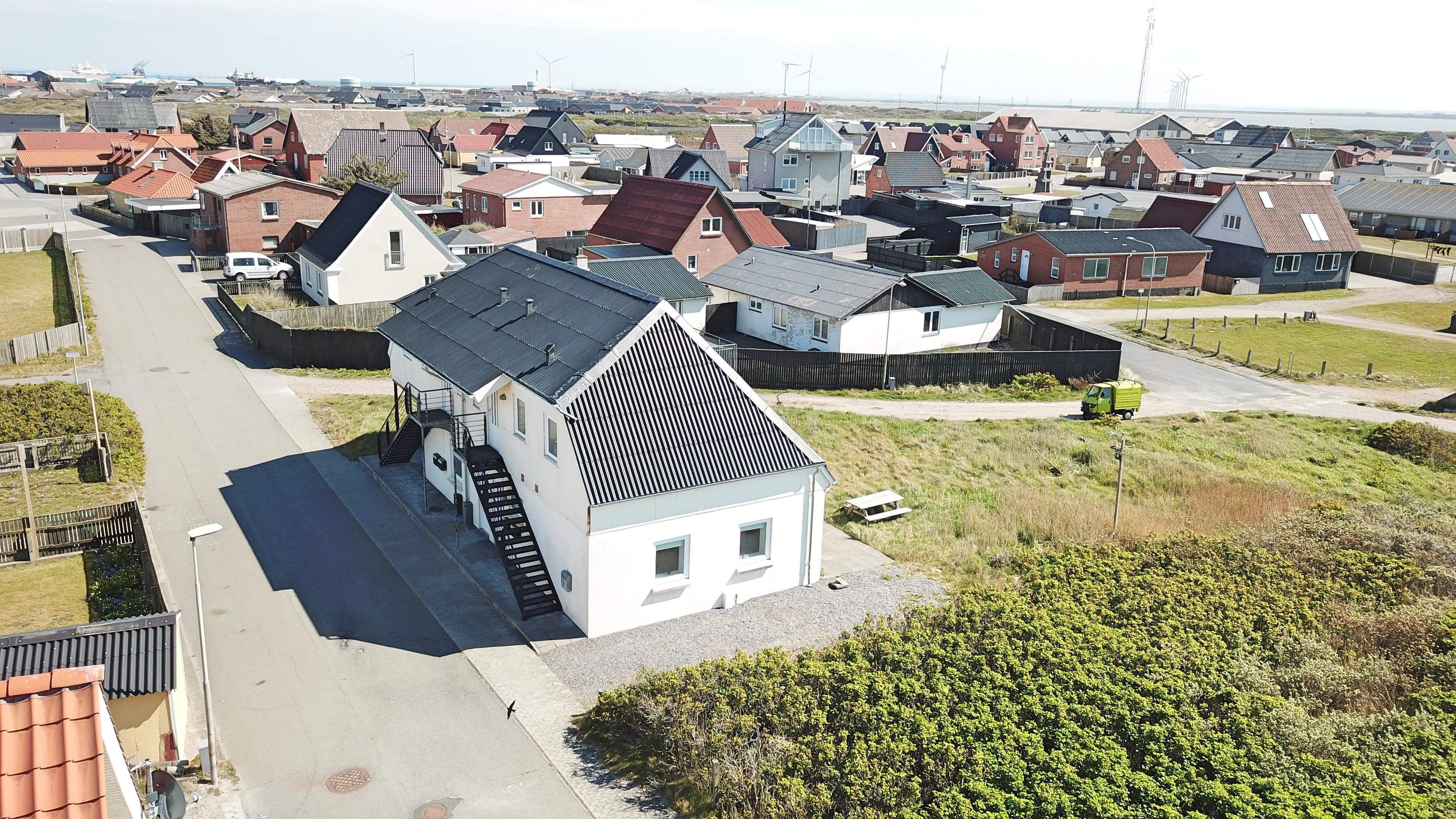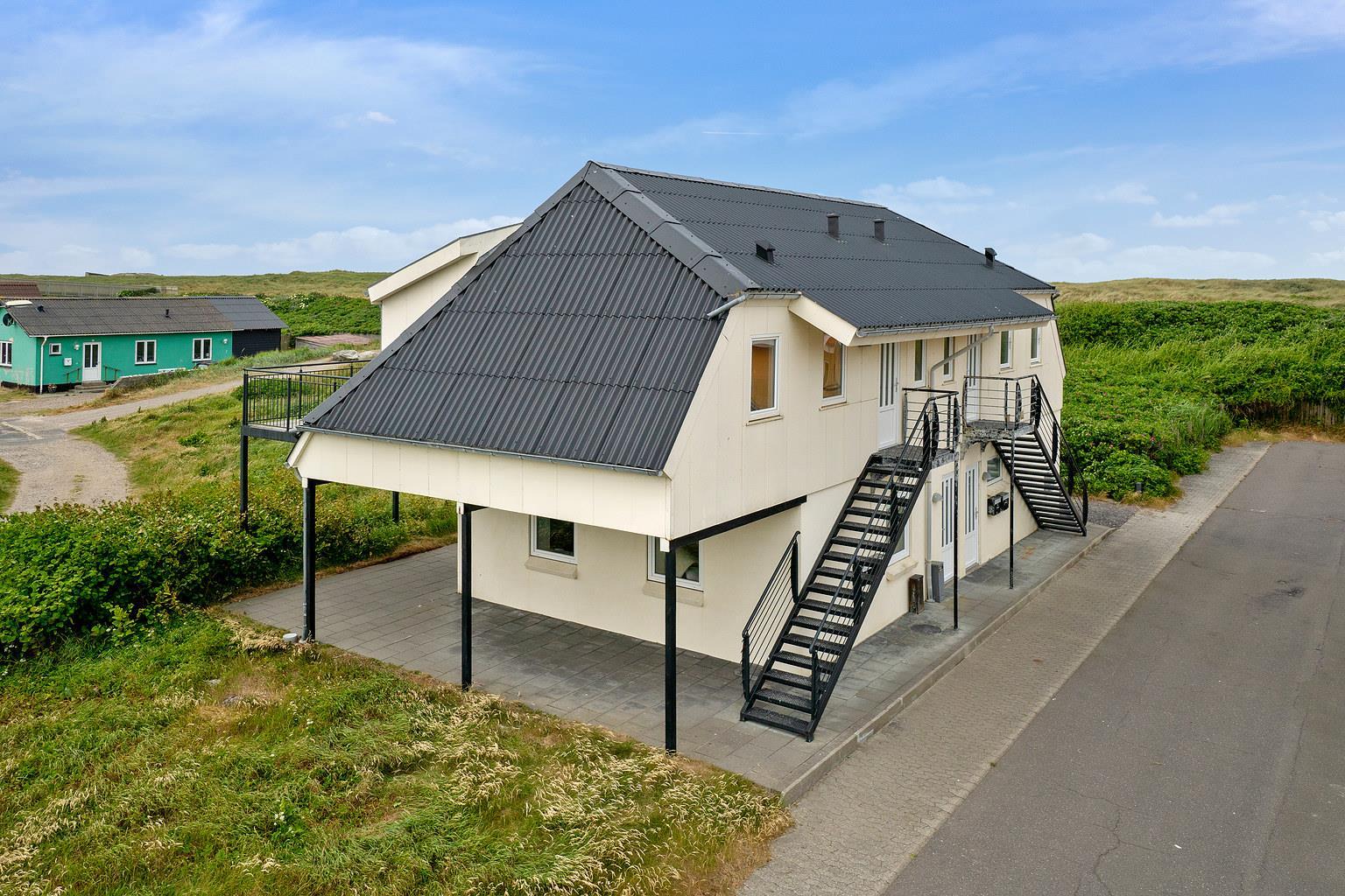 Stor, velbeliggende bygning med 4 lejligheder (2 på 2 sal og 2 i stueplan). Lejlighederne har gratis W-LAN med begrænset og lav adgang og ligger kun 50m fra de høje klitter direkte ved Vesterhavet.