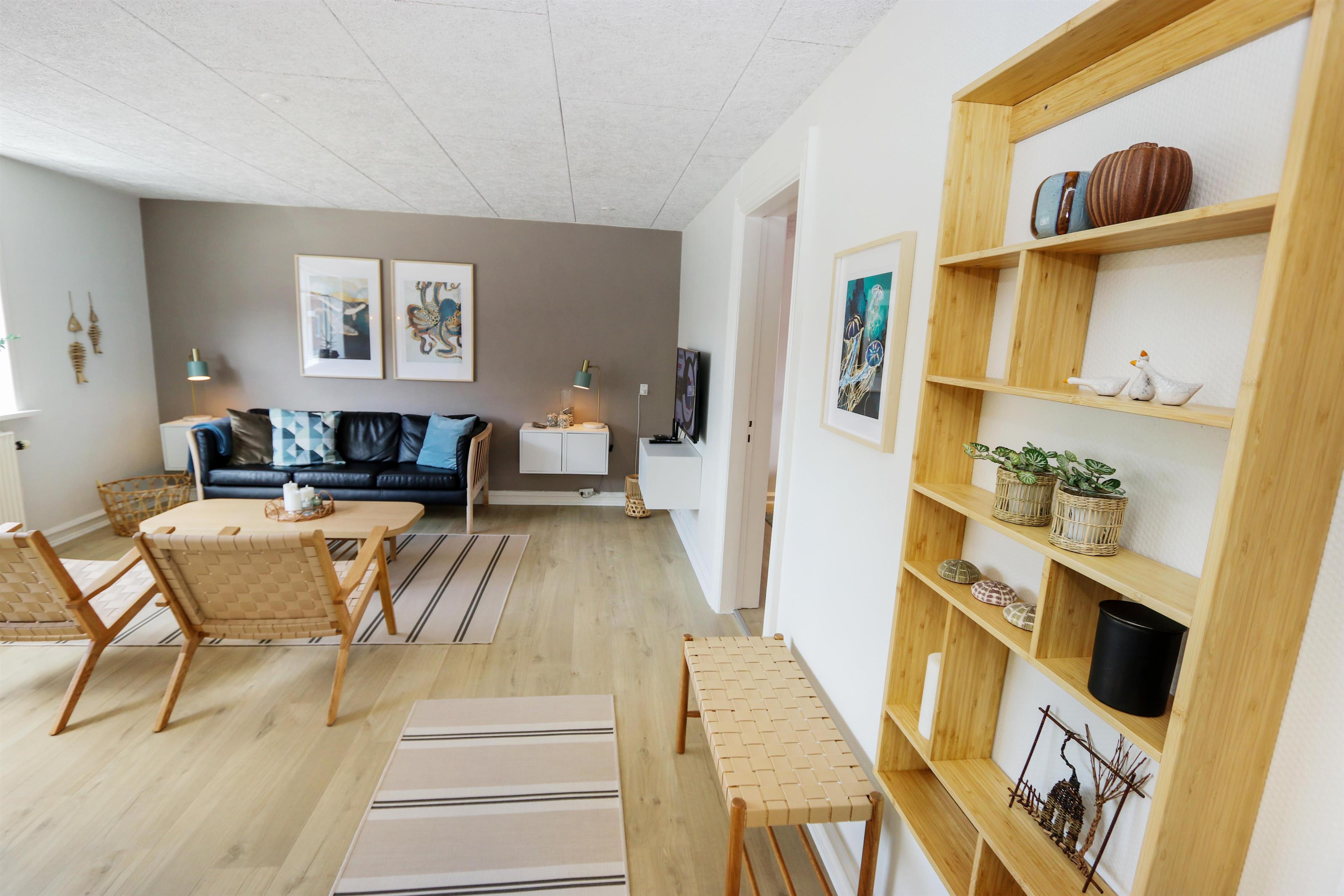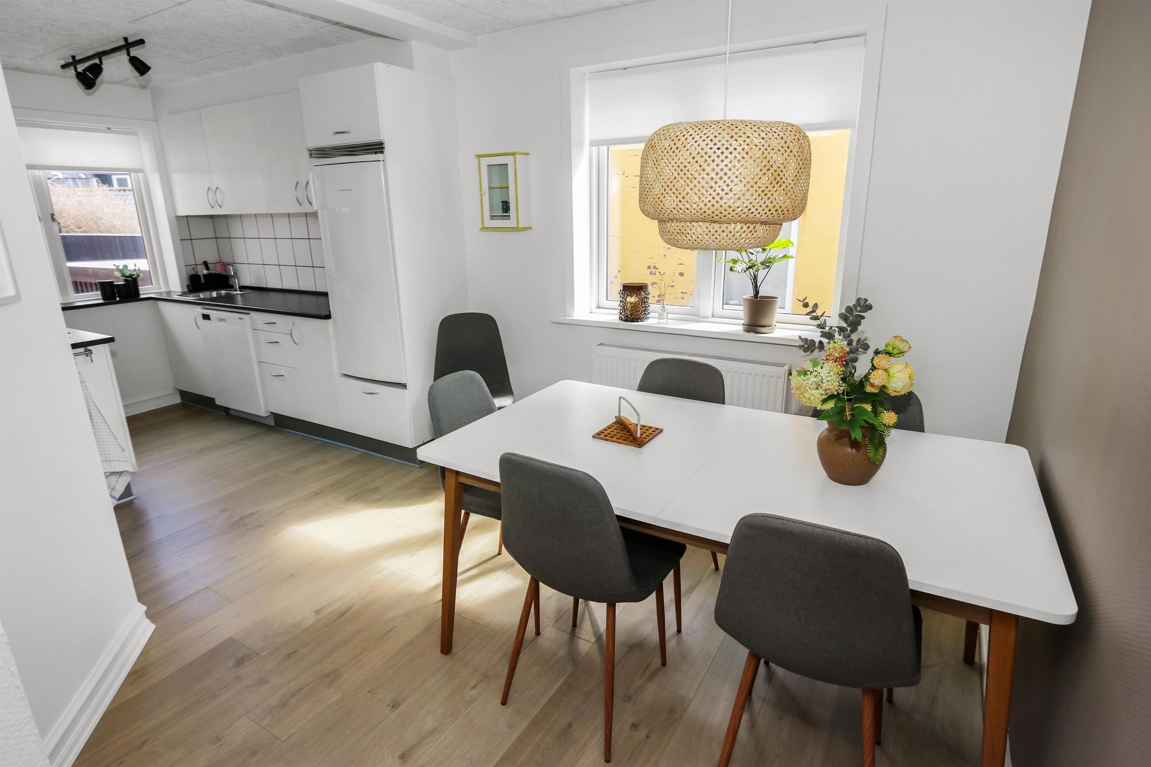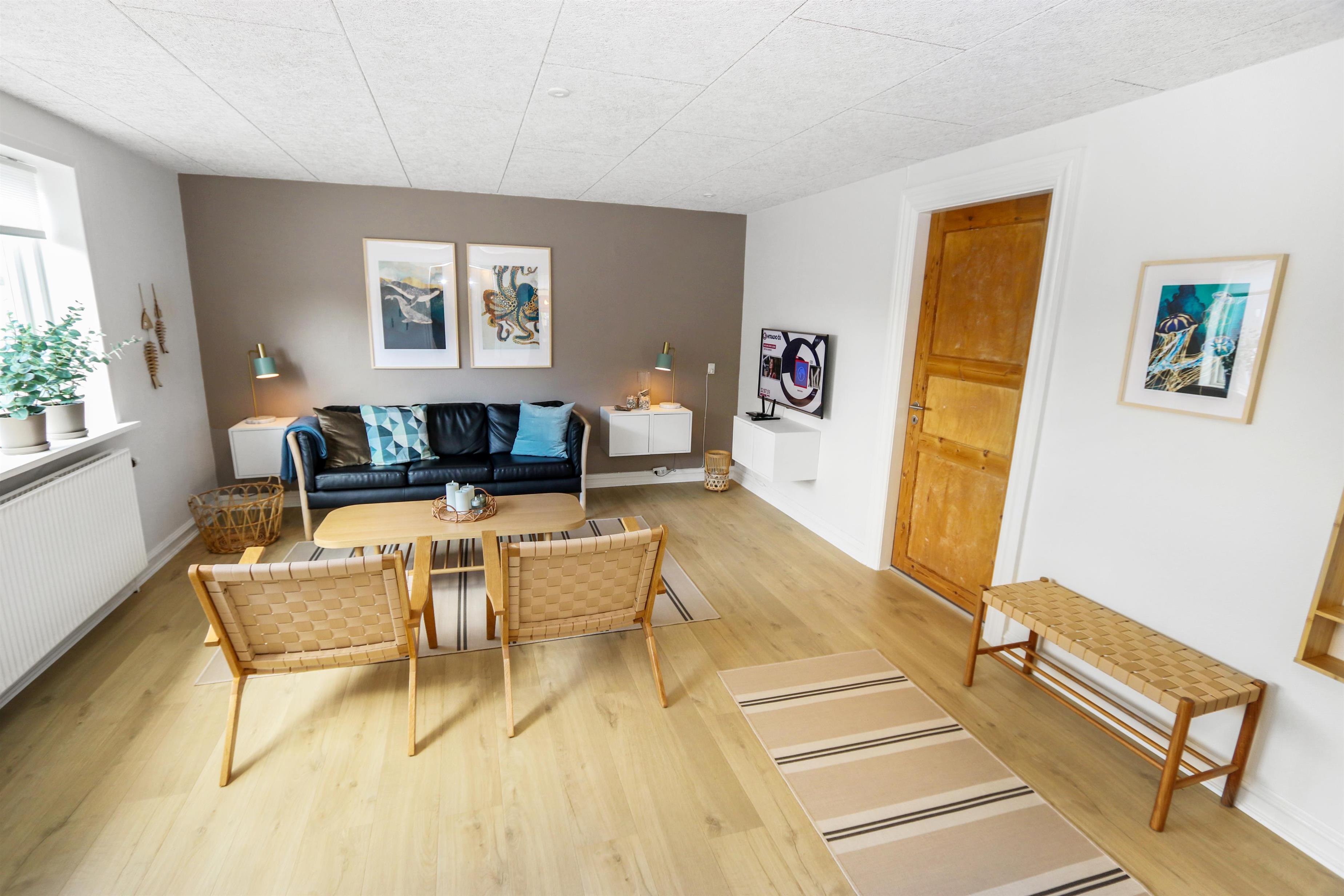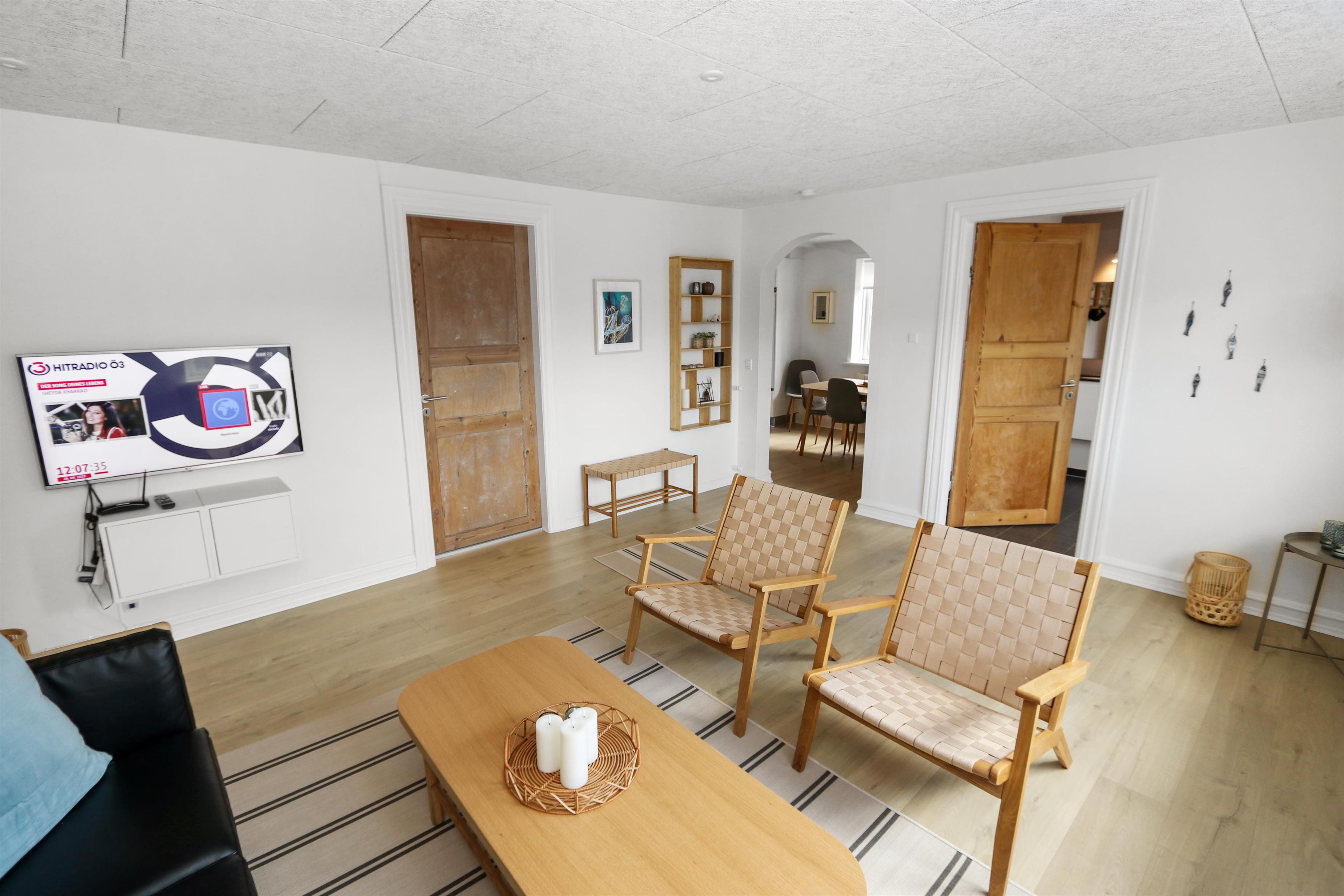 i 2023 blev dette dejlige helårshus renoveret. Når du går gennem husets hoveddør mødes du af en flot entre med trappeopgang. Fra entreen er der adgang til et lækkert køkken med alt i hvidevarer. Køkkenet råder bla over et komfur med glaskeramiske kogeplader, emhætte, opvaskemaskine, mikroovn, køleskab , alt i service køkkengrej samt trægulv. Flot opholdsstuen. Renoveret med moderne materialer. polstermøbler og lædermøbler og stort spisebord, TV med dansk DR1 og parabol til de tyske kanaler samt chromecast til streaming af egne programmer via apps. I alle opholdsrum er der praktiske og rengøringsvenlige trægulve. 3 soveværelser. 1 af soveværelserne er i stueetagen (1DS) samt 2 soveværelser i kælderen med 2S + 2S. Indbydende badeværelse med toilet, bruser, håndvask samt klinkegulv. Fra entréen går der en trappe ned til en stor nyistandsat kælder med 2 soveværelse (2S, 2S), det ene soveværelse er med "walk in" garderobe. Bryggers med ekstra bordplade med vask, vaskemaskine og masser af ekstra plads samt hyggeligt aktivitetsrum med bob og elektronisk dartskive. Ikke rygerhus. 1 husdyr tilladt.