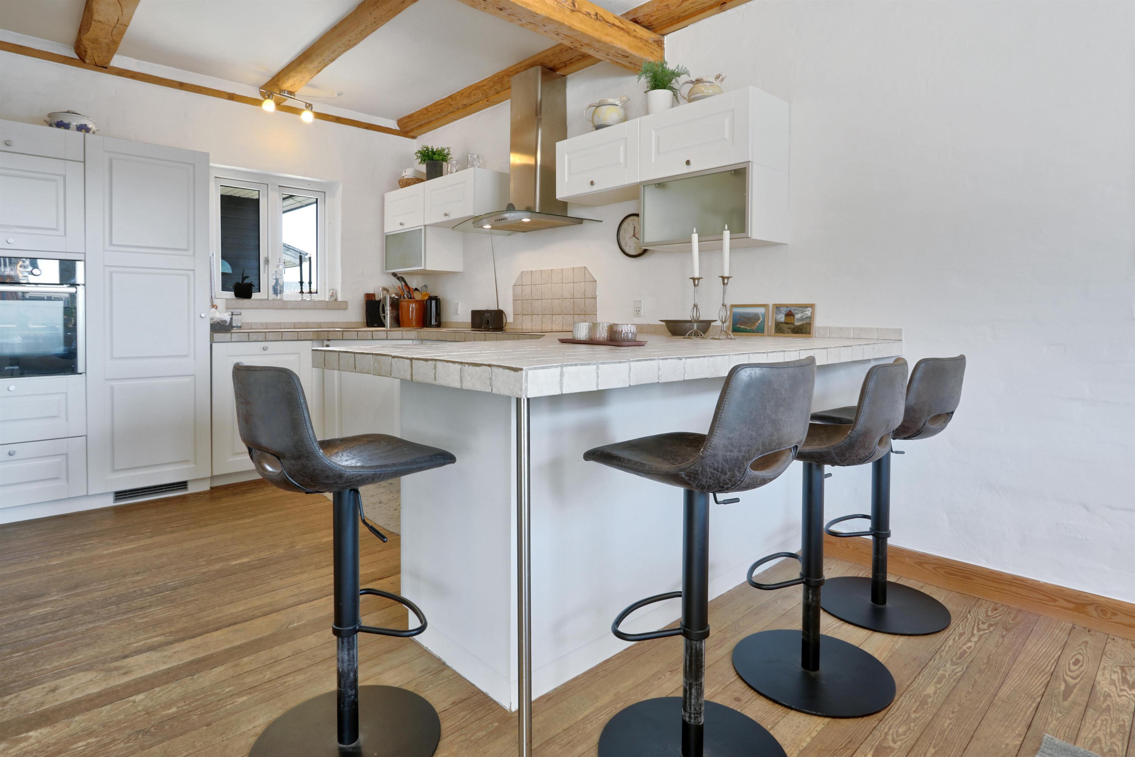 Oprindeligt opført i 1941 og nænsomt renoveret i 2008, fremstår huset i dag både flot og meget velholdt. De smukke trægulve og synlige bjælker i loftet skaber en varm og charmerende atmosfære. Den lyse og åbne stue/køkkenløsning fungerer som husets naturlige samlingspunkt med brændeovn, spiseplads, TV og alle moderne faciliteter.