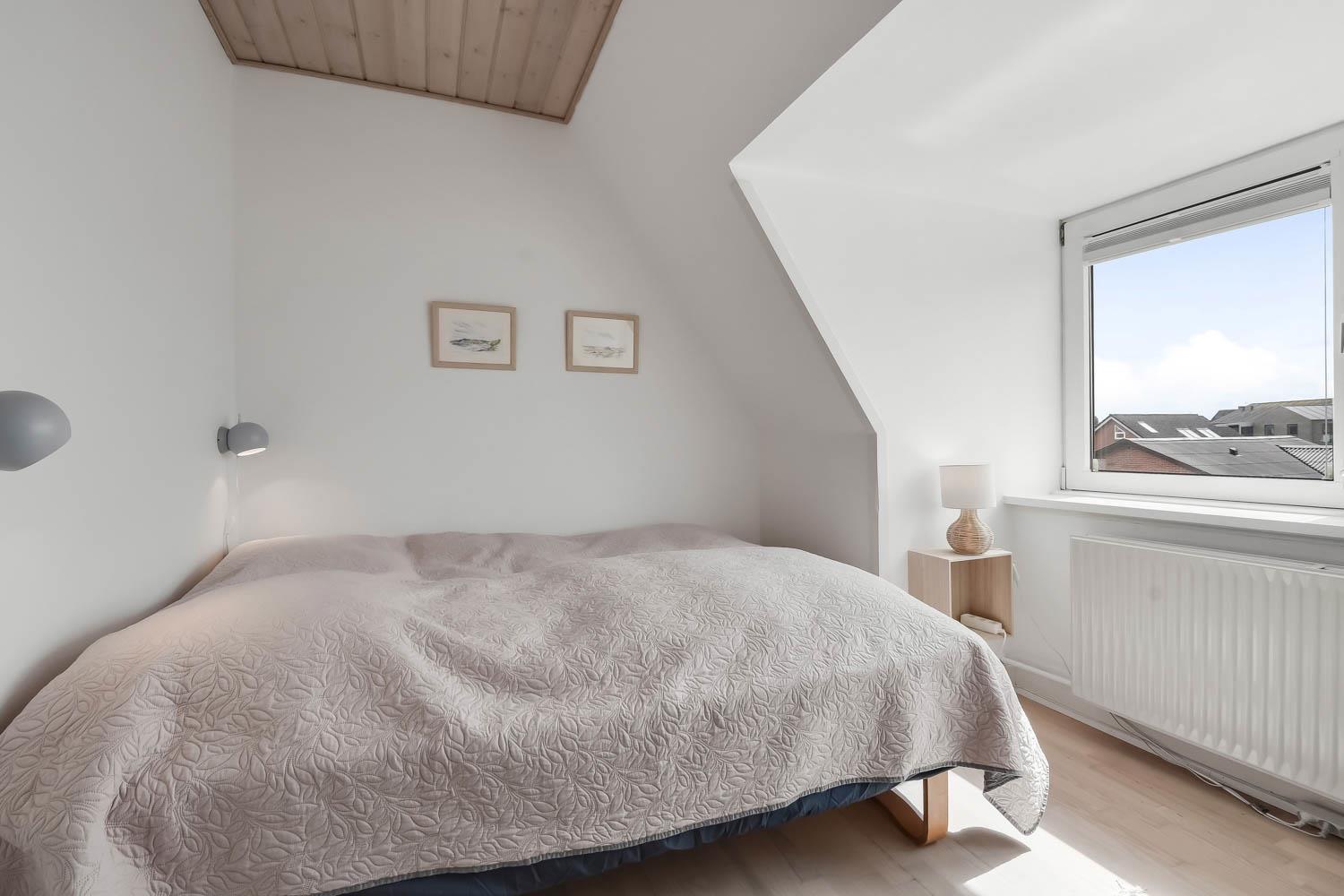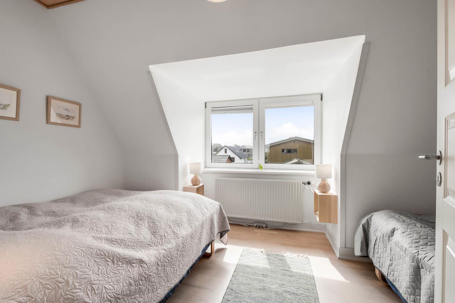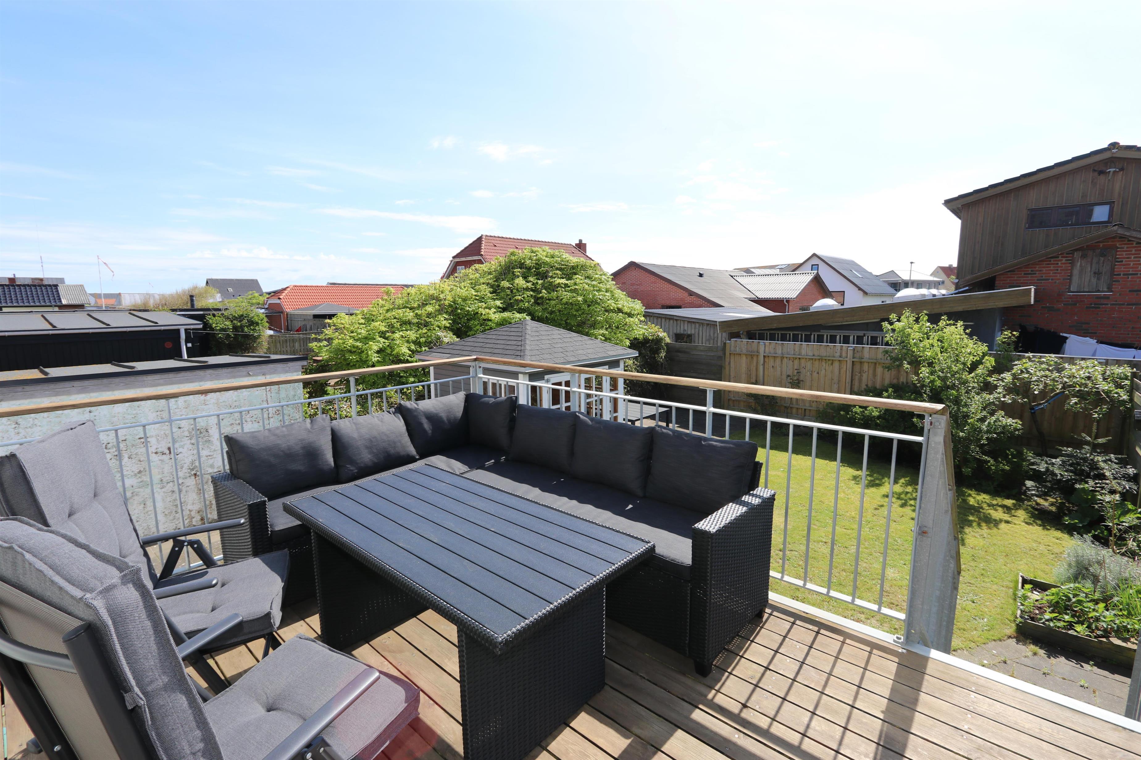 122 m2 stort helårshus med fjernvarme, gratis internetadgang og 65 m2 kælder. En funktionel entré byder velkommen og fører jer til husets forskellige etager. I stueplan ligger køkkenet og opholdsstuen. Køkkenet er veludstyret med et komfur med glaskeramiske kogeplader, emhætte, ovn, køleskab, mikroovn og opvaskemaskine. Opholdsstue med lædermøbler, Smart-tv, streaming, tysk, svensk og norske kanaler samt udgang til dejlig terrasse I niveau med havemøbler, 2 solvogne og grill. Terrassen og lille have med pavillon ligger mod øst/syd i læ for vestenvinden. Trappe til første sal med rummeligt badeværelse med bruseniche, toilet og håndvask samt 2 store soveværelser (1DS) (1 trekvart og 1ES). Trappen fortsætter til 2. sal, hvor der er et kombineret opholdsrum med biopejs og soveværelse (1DS) og flot udsigt til hav og klitterne ved Vesterhavet. Entre med trappe til kælderrum med fryser, vaskemaskine og tørretumbler og mulighed for at opbevare fiskegrej og surfudstyr. Rygning og husdyr er ikke tilladt.