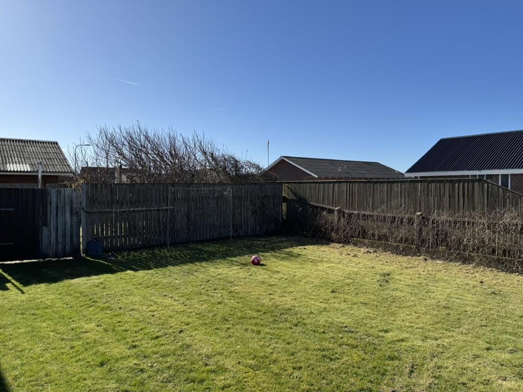 Udenfor finder I en dejlig terrasse med havemøbler og grill. Her er også en trampolin, som I frit kan benytte (NB! Trampolinen benyttes på eget ansvar). Her er også fodboldmål, så I kan holde en lille privat turnering. Haven er lukket af, så hunden kan gå frit omkring, uden der er fare for, at den løber væk.
