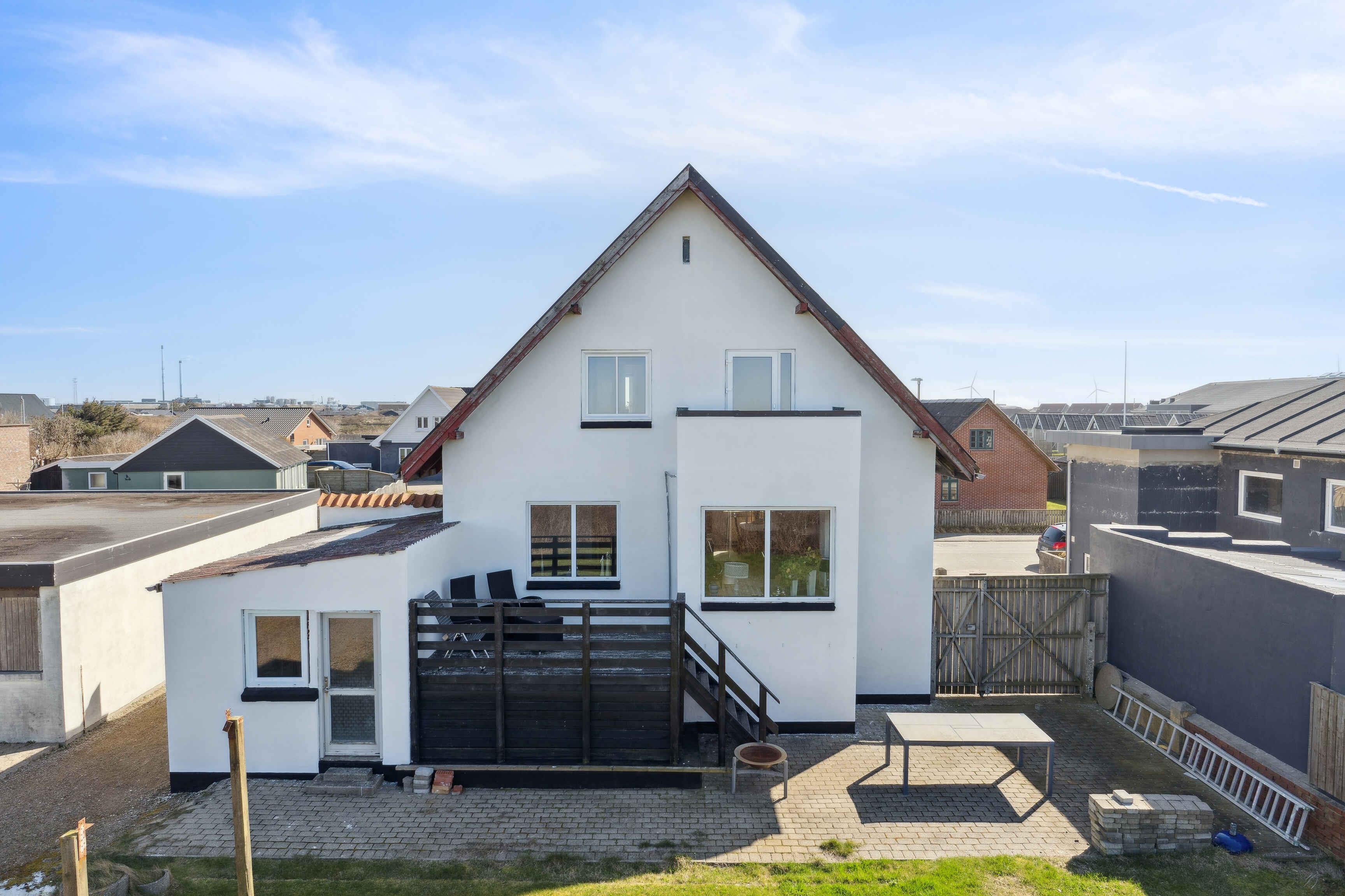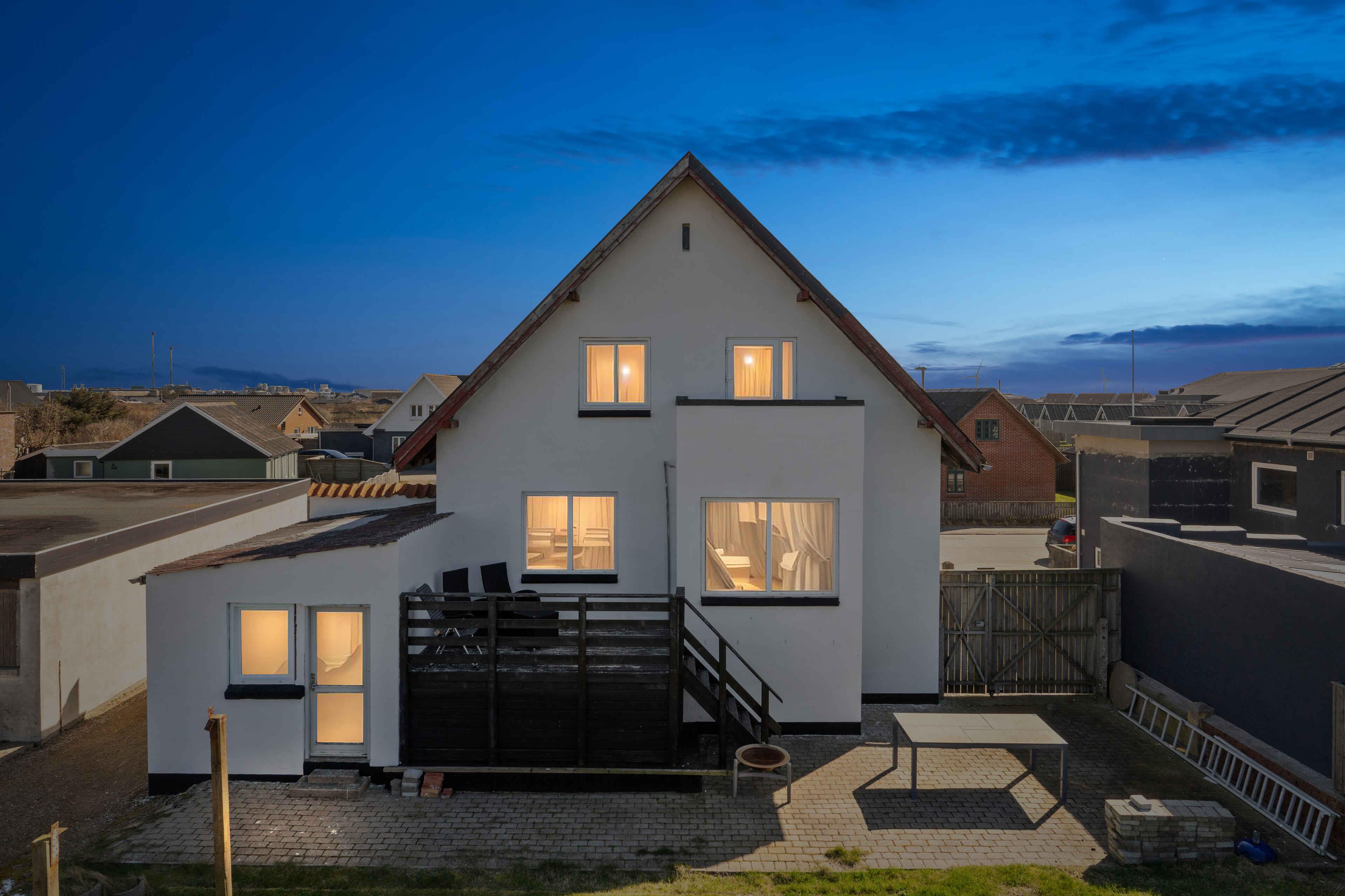 Dejligt feriehus i Thyborøn tæt på Vesterhavet med stor terrasse og gratis adgang til svømmehal og legeplads.
