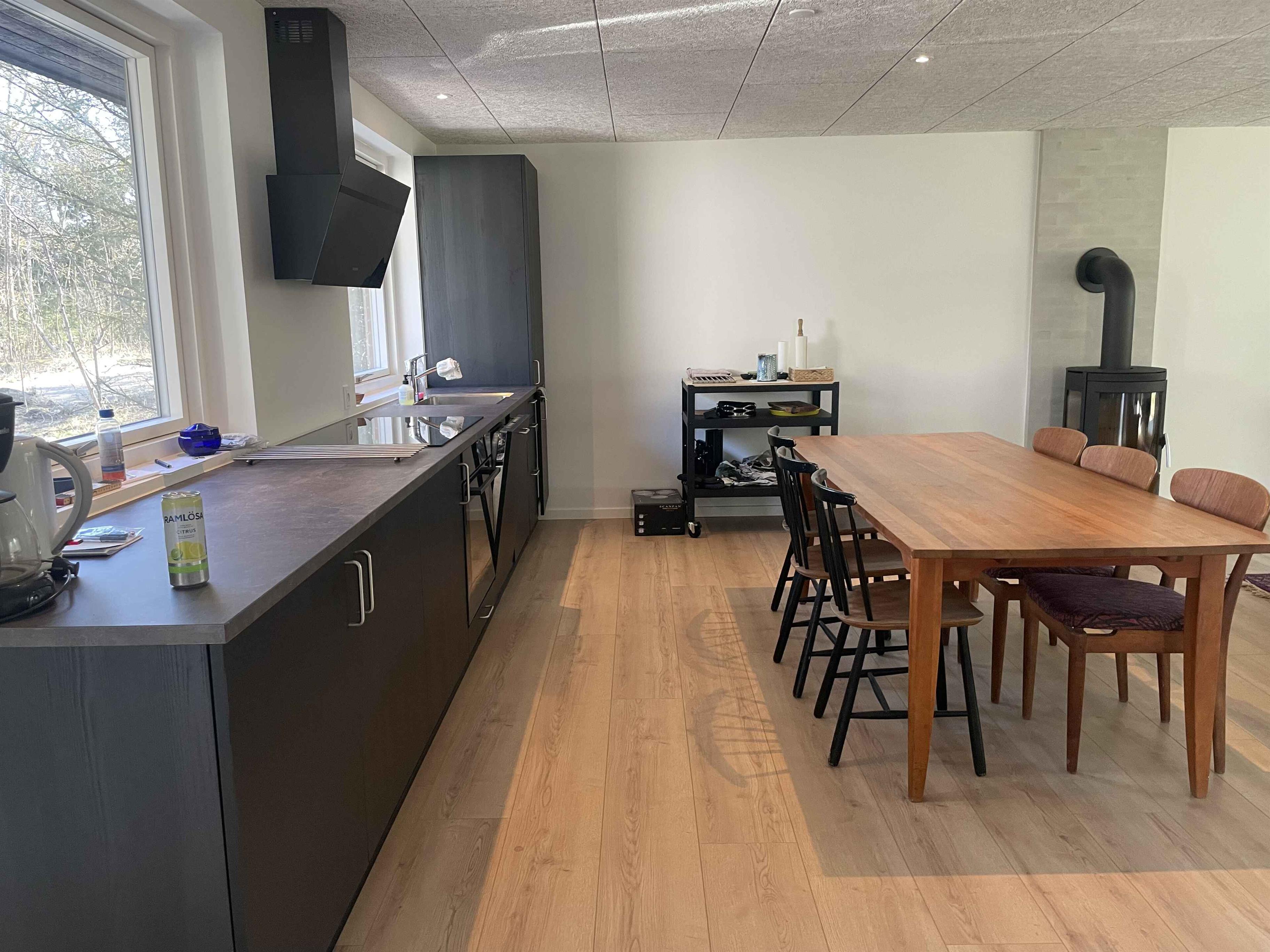 Dette nyrenoverede sommerhus fra 2024 ligger i første række med kun 75 meter til vandet. Her får I en fantastisk beliggenhed tæt på naturen og et komfortabelt ophold. Huset er 124 m² og rummer tre soveværelser med plads til seks personer. Den velindrettede planløsning gør det ideelt til både familier og vennegrupper. I det åbne køkken-alrum er der varmepumpe og brændeovn, der sikrer et behageligt indeklima året rundt. Her kan I samle jer til hyggelige måltider og afslapning. Internetadgang gør det let at kombinere ferie med arbejde eller underholdning. Huset er udstyret med moderne faciliteter og indbyder til både afslapning og praktisk anvendelse. Den store terrasse og den udendørs bruser med både varmt og koldt vand er perfekte til sommerdage. Her kan I nyde udsigten, grille og tage et forfriskende bad efter en tur til stranden. Området omkring huset byder på en unik kombination af kyst og natur. Langs stranden kan I finde små stier til gåture og opleve det varierede dyreliv. De nærliggende landsbyer tilbyder spændende lokale specialiteter, små butikker og hyggelige caféer. Der er også gode muligheder for at fiske eller sejle. En tur rundt på halvøen afslører storslåede udsigter, historiske seværdigheder og mange aktiviteter for både børn og voksne. Her kan I skabe minder, der varer ved. Dette sommerhus er det oplagte valg for dem, der søger et moderne hjem tæt på naturen. Bestil jeres ophold nu og oplev det selv. Obs, udlejes ikke til erhversmæssigt brug.