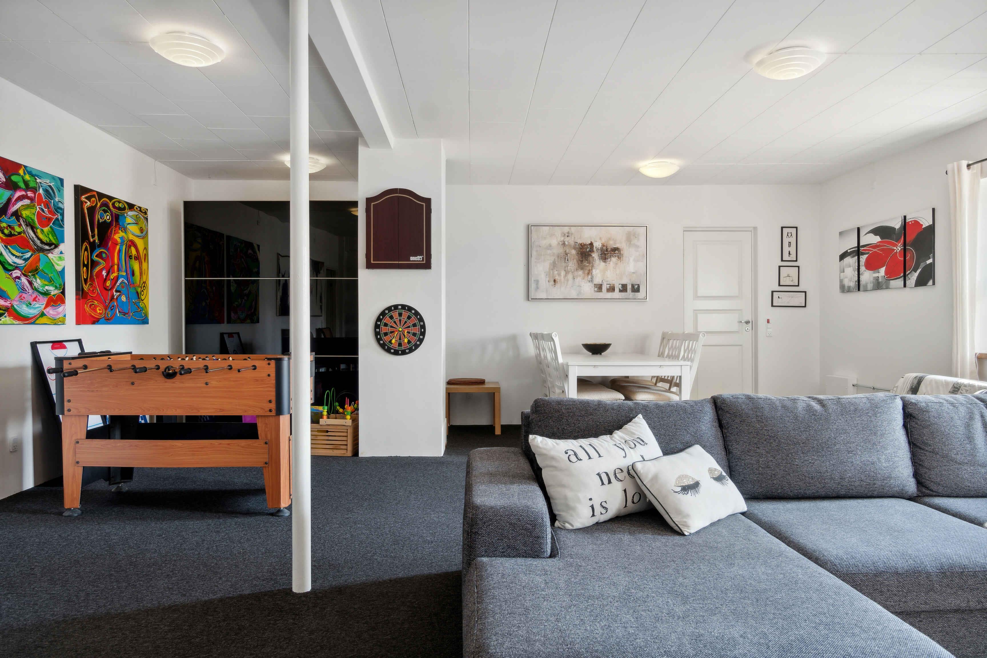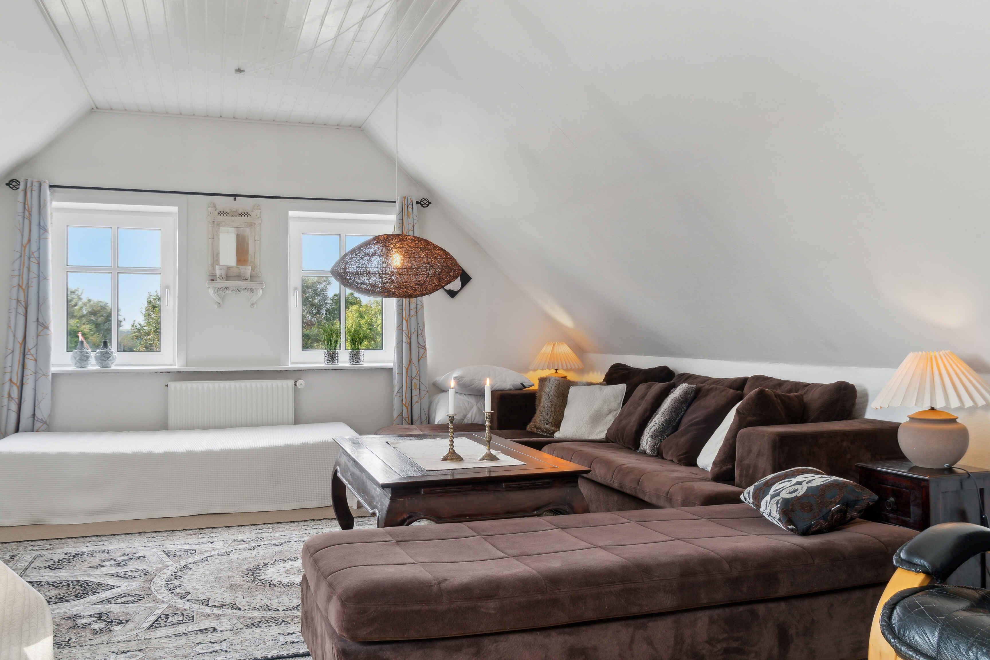 Gør jer klar til en vidunderlig ferie ved Limfjorden i dette rummelige og komfortable hus med spa og gode faciliteter. Velkommen til Thyholm, hvor der venter jer denne perle af en feriebolig i en behagelig gåafstand fra stranden. Huset byder på masser af plads og gode faciliteter, så I kan rejse med en større flok uden at give køb på hverken privatlivets fred eller den gode komfort. I finder køkken i både stueetagen og på første sal, så I bestemmer selv, om I vil lave mad med hele flokken eller dele jer lidt op. I aktivitetsrummet kan børnene more sig med legeredskaberne, og måske I skal udfordre familien til nogle dueller ved bordfodboldbordet? I stueetagen finder I det store, åbne opholdsrum, hvor sofaerne indbyder til mange hyggestunder med brætspil eller en god film, når en skøn feriedag nærmer sig sin afslutning. For lidt ekstra wellness kan I glide ned i boblerne i spabadet og finde roen. Til huset hører en dejlig, stor grund, hvor børnene kan få mange timer til at gå ved trampolinen, gyngen eller sandkassen, mens I daser i en havestol med en god bog. På de smukke sommeraftener er det bare at fyre op i grillen, hvor I kan tilberede familiens livretter med en kølig drink i hånden. I huset er der to cykler, som I kan benytte jer af og trille på udflugt. En ferie ved Limfjorden er lig med uforglemmelige naturoplevelser, fantastiske landskaber, badesjov og mange aktivitetsmuligheder for store og små. Med lavt vand og blide bølger er strandene ved Venø Bugt særligt familievenlige. Ved Handbjerg Marina er der desuden mulighed for at surfe, og området er ideelt til en tur i kajakken og til at glide hen over vandet på SUP-boardet. Tag også på cykel- og vandreture i en mangfoldig natur med skove, søer og heder. Geddal Strandenge er noget helt særligt. Glem ikke at besøge Venø, der bugner af smuk varieret natur, et rigt fugleliv og hyggelige små gallerier. Se frem til en ferie, I ikke vil hjem fra, med base i dette fantastiske hus.