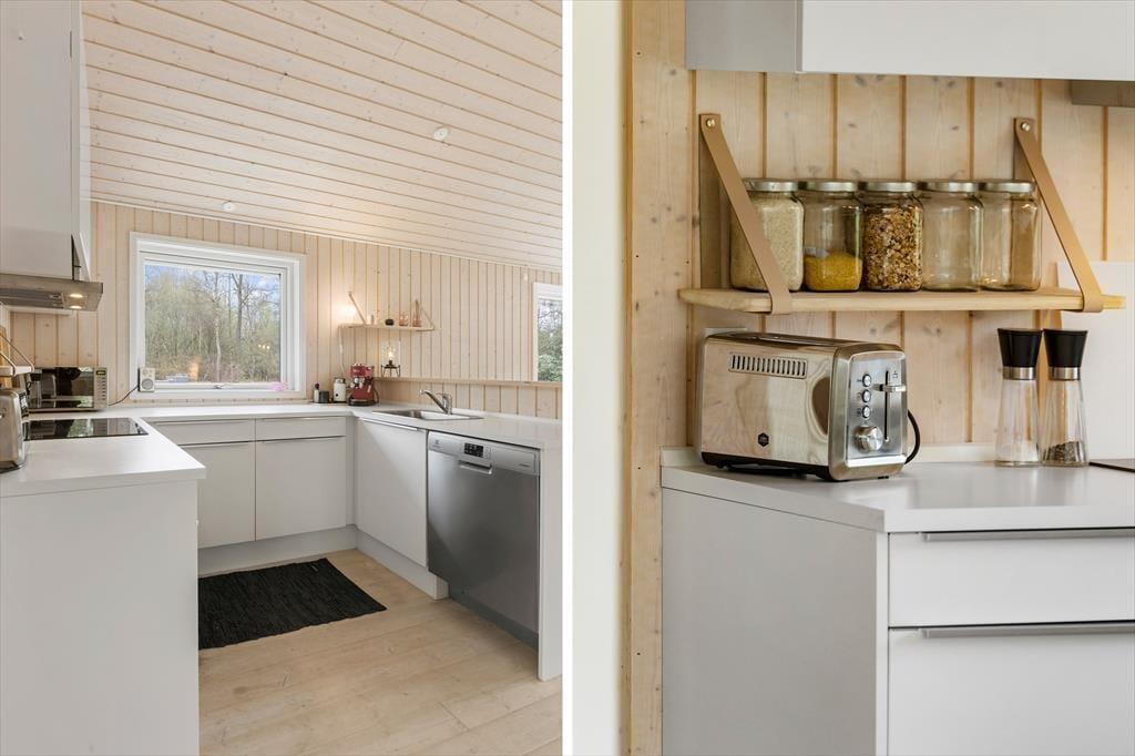 I det åbne køkken kan du udfolde dig kulinarisk og skabe minder omkring madlavning sammen. Med alt hvad du behøver, inklusive en praktisk opvaskemaskine, kan du fokusere på det vigtigste: tid med dem, du holder af.
