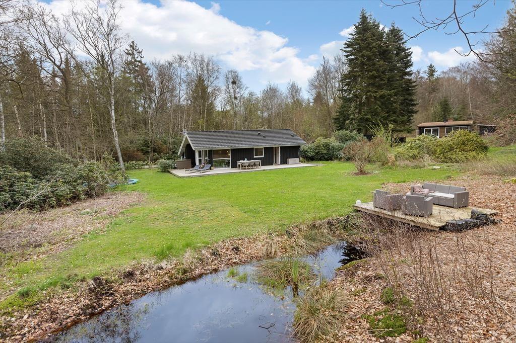 Udenfor venter en skattekiste af muligheder. Den store terrasse er det ideelle sted at nyde solen og naturens symfoni og de lange sommeraftener. I haven er der rigeligt med plads til sjov og leg, med en trampolin til de yngre, og en lille hyggelig og intim terrasse ved åen med et loungesæt, hvor du kan slappe af.