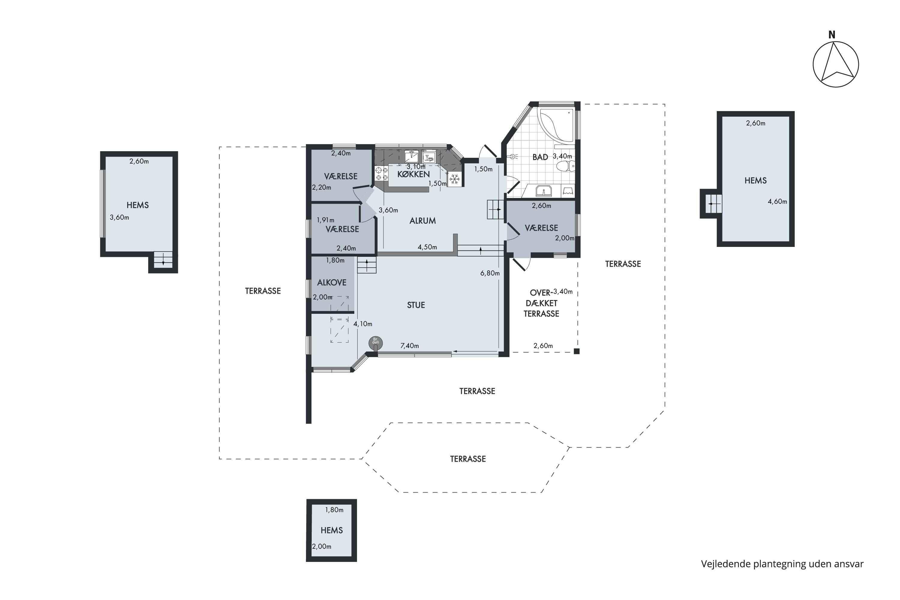 Huset ligger i hjertet af Nordsjælland, tæt på både Hornbæk, Fredensborg og Helsingør. Det er velholdt og er godt indrettet og velplaceret med panoramaudsigt over naturen Huset ligger fredeligt og ugeneret for enden af stikvej og er med træer og beplantning yderst afskærmet fra tilstødende nabogrunde. Fra den store sydvendte terrasse er der uspoleret og langstrakt udsyn over totaltfredet moseområde, skov og sø. I samme retning er der fri passage til solens bane, hvilket gør huset særdeles solrigt. Sommerhuset ligger på kanten af Langesø Plantage. Et naturområde, der primært består af fredet skov, mose og søer, der tidligere har været Danmarksberømt planteskole med import af udenlandske og eksotiske planter, og som blandt andet tæller kongehuse og landets botaniske haver som storkunder. Fortiden som planteskole sætter den dag i dag fortsat sit præg i Langesø. Overalt mødes du af en bred vifte af planter fra alle dele af verdenen: lotus, rhododendron, åkander, bregner m.m. Det frodige planteliv blander sig på charmerende vis med områdets mange små søer og åløb og danner samtidig grobund for et rigt og vildt dyreliv. Langesø grænser desuden op til andre smukke naturområder: Esrum Sø og Gurre Sø med mulighed for at bade og vandre, samt Hornbæk Golfklub, hvor du kan nyde en runde golf midt i naturen. Udover grundens naturrige og fredfyldte placering, er der heller ikke langt til indkøb, oplevelser og kultur. 2 km mod syd ligger Tikøb by med supermarked, bager, slagter og røgeri. 7 km mod nord ligger den charmerende kystbyer Hornbæk med strand, havn, spisesteder og et mangfoldigt leben. Mod øst er der 10 km til Helsingør, hvor man finder shopping, kultur, historie og moderne arkitektur i form af bl.a. Kronborg, Helsingør madmarked og Søfartsmuseet. Fra huset er der ca. 35 minutter i bil til København Huset er i åbent plan med køkken og spiseområde sammen og med nogle trin ned til stuen, der er yderst lysrig, takket være de store panoramavinduer, trekandsvinduer og loftvinduer. Til de kolde måneder er der brændeovn og gulvvarme i køkken-alrum samt badeværelse. Køkkenet har ovenlys, så I har masser af lys til madlavningen, og indeholder i øvrigt alt, hvad I har brug for til tilberedning af hyggelige feriemåltider. I kan selvfølgelig også grille på den store terrasse. Der er 3 soveværelser, hvoraf to er indrettede med dobbeltsenge. Det tredje soveværelse har en køjeseng med to sovepladser. Derudover er der en alkove med to sovepladser. Badeværelset har brusebad, hjørnespa og vaskemaskine til rådighed. Den ene af de to hemse kan benyttes af lejere. Den anden er lukket af for lejere til udlejers private ejendele. Obs, udlejes ikke til erhversmæssigt brug.