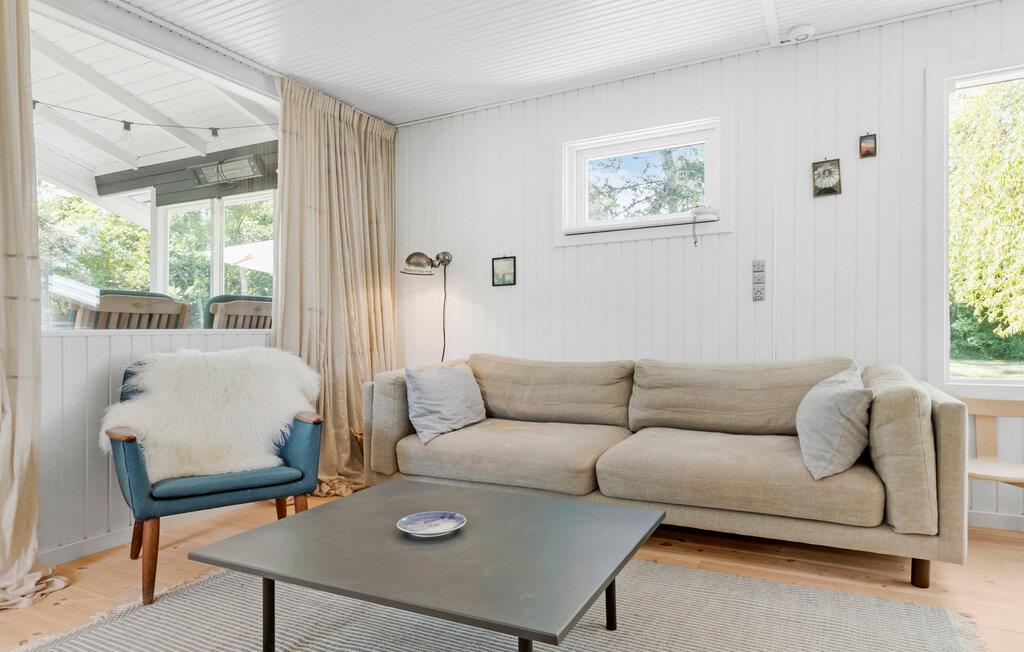 Tag familien under armen og rejs til Nordsjælland, hvor I en kort køretur fra Tinkerup Strand finder denne perle af en bolig i rolige, grønne omgivelser. Huset er nydeligt indrettet med lyse træpaneler, gode møbler og fin kunst på væggene i den åbne stue, hvor I kan tænde op i brændeovnen, hvis vejret bider lidt fra sig. Stuen får dejlige lysindfald gennem de store vinduespartier, der samtidig giver en fin udsigt til den grønne have. Køkkenet er veludstyret, så gør madlavningen til et sjovt familieprojekt, inden der dækkes op til en hyggelig aftensmad ved spisebordet.