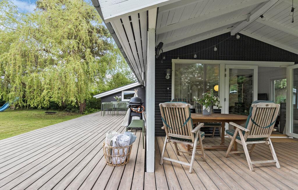 Udeområdet er virkelig dejligt. Her er der masser af plads i haven og gode legeredskaber, som børnene kan boltre sig med, når solen bager. Alt imens kan de voksne nyde roen på terrassen eller i hængekøjen, køle sig ned med en god drink og smide gode bøffer på grillen til en lækker aftensmad i det grønne.