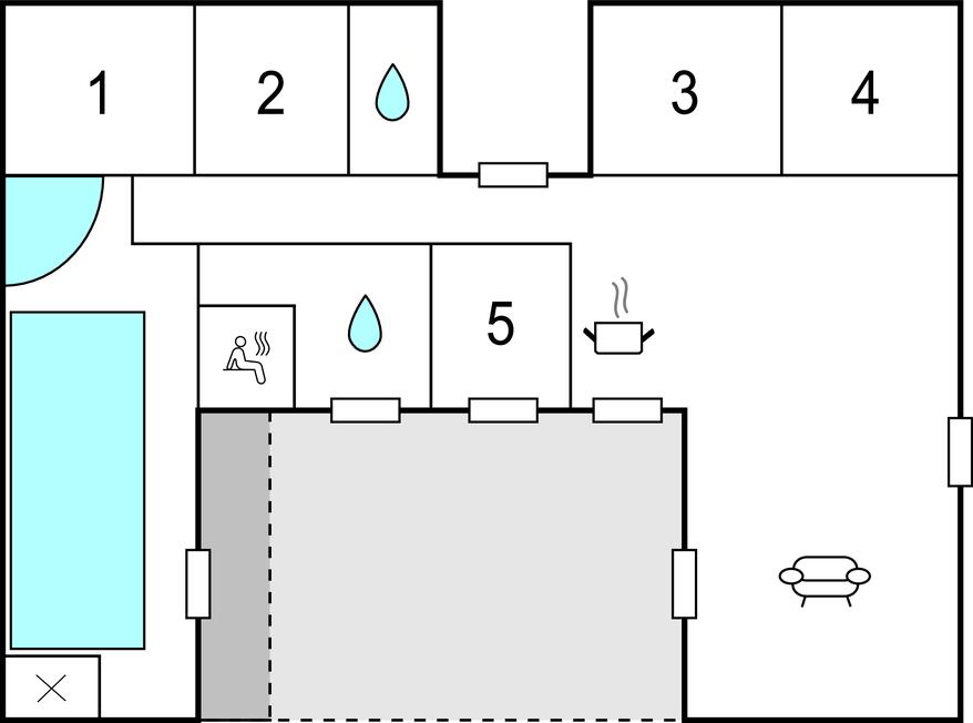 Et lyst og rummeligt sommerhus med loft til kip i køkken/alrum samt i stuen. Her er god plads til hele familien i de fire gedigne soveværelser, dertil kommer et ekstra værelse på hemsen (adgang via en trappe). I husets wellnessafdeling kan I få en skøn oplevelse med en forfriskende svømmetur i swimmingpoolen efterfulgt af herlig massage i spabadet og en tur i den velgørende sauna - ren forkælelse! Fra flere rum er der udgang til den ugenerte terrasse, hvor solen kan nydes til sent på dagen. I nærheden findes en fælles tennisbane, en stor legeplads samt petanque- og boldbane.
