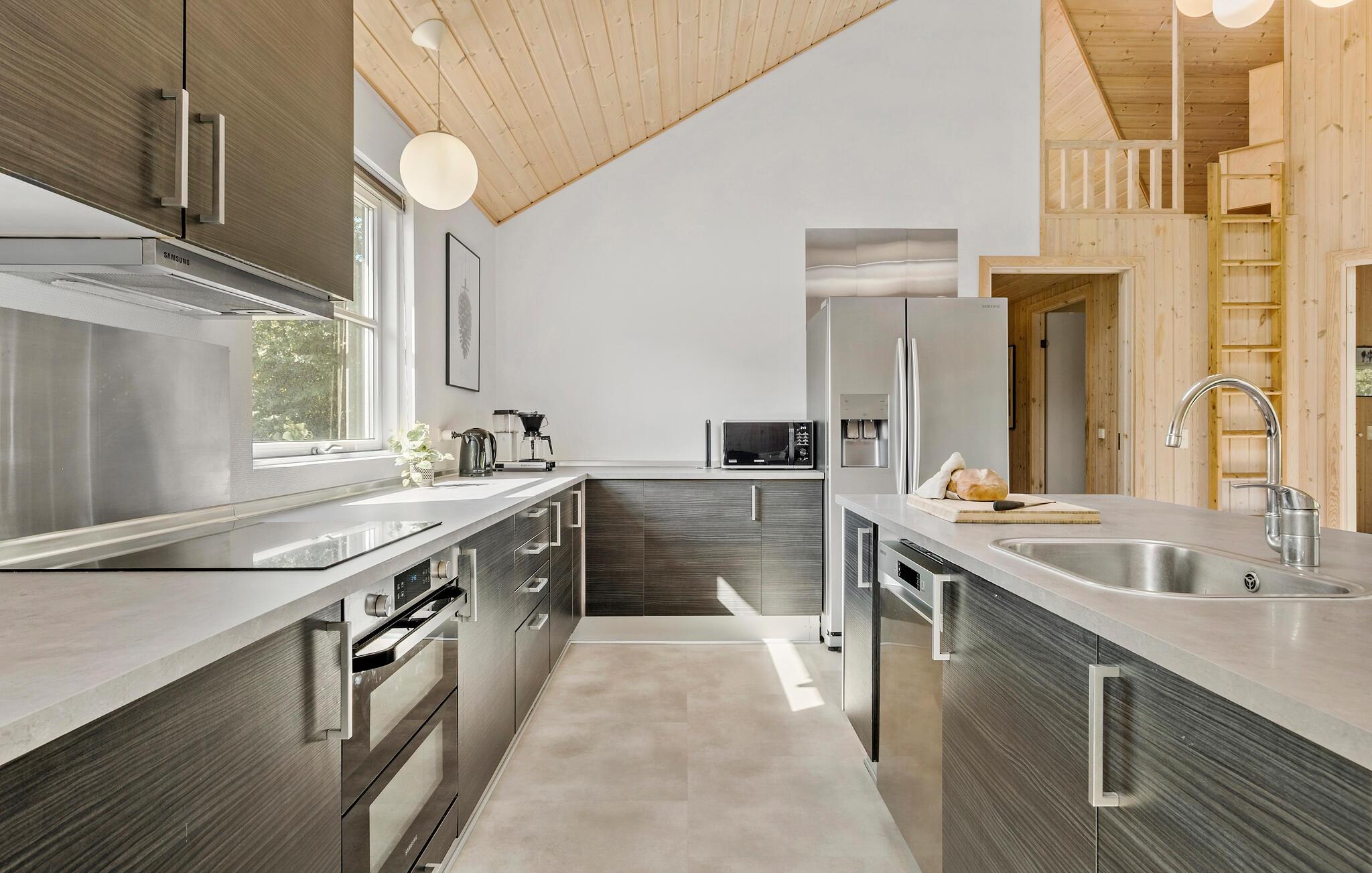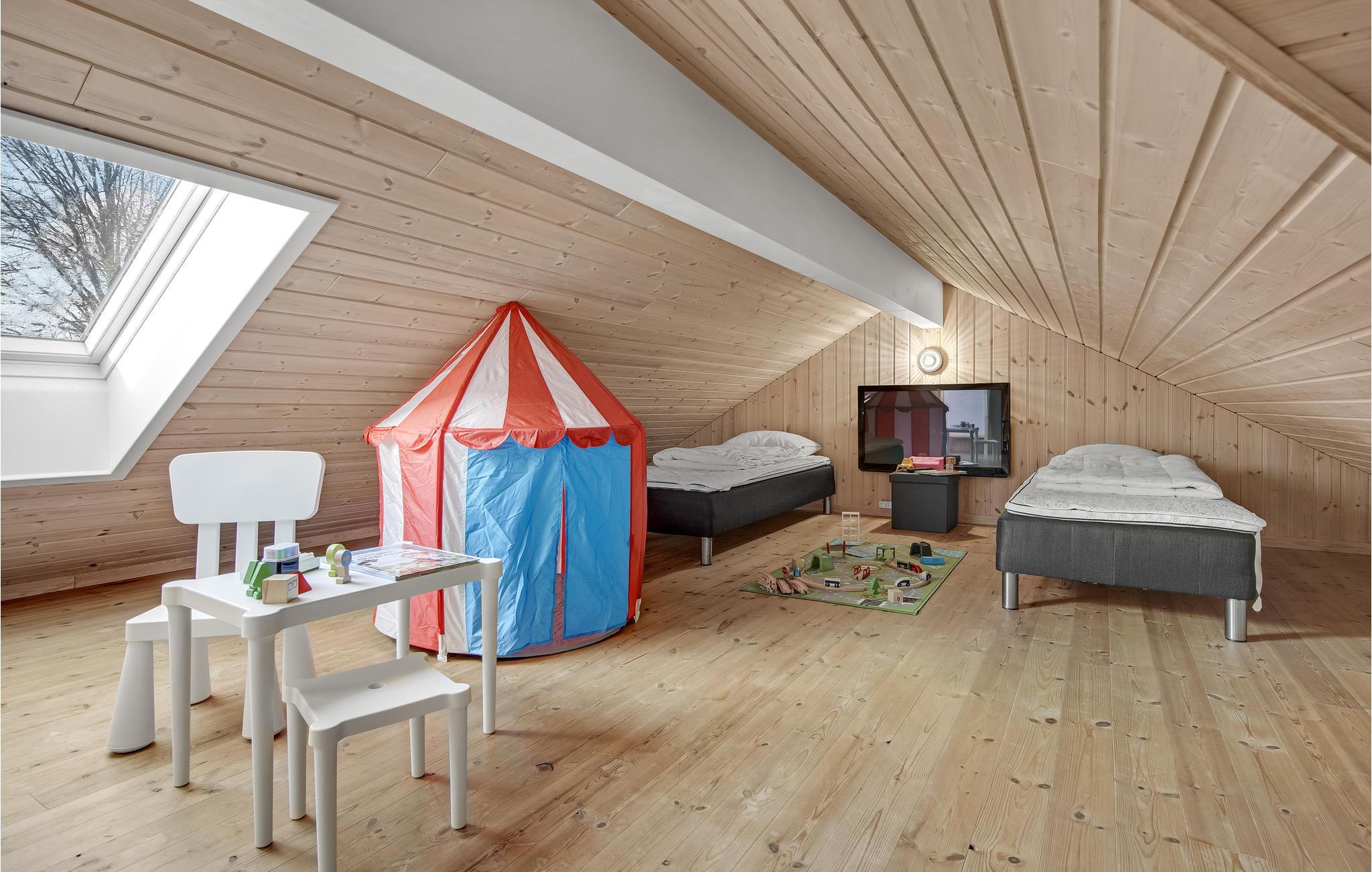 Et fantastisk sommerhus med masser af plads til en eller flere familier. Huset er beliggende ved et af Nordsjællands mest populære ferieområder samt bedste badestrande. I huset er der højt til loftet og et velindrettet åbent køkken/alrum, hvor I kan hygge jer sammen omkring spisebordet med spil eller sidde i den smagfuldt indrettede stue foran brændeovnen med en god bog og en kop kaffe. I aktivitetsrummet kan I dyste mod hinanden i bl.a. billard, bordtennis og bordfodbold, fra den lille sofagruppe kan tilskuerne følge med i kampene. Husets to soveafdelinger ligger på hver side af aktivitetsrummet med henholdsvis tre soverum og et badeværelse i hver afdeling. Desuden findes to hemse med hver to madrasser, på den ene hems står et tv med dvd (det er ikke muligt at se tv-programmer). Poolrummet er rigtig lækkert indrettet med både swimmingpool, spabad og sauna. Grunden er kuperet og på den nederste del er der god mulighed for at spille fodbold og lege. Tisvildeleje er en hyggelig lille by med mange små butikker, caféer og restauranter - hele sommeren summer der af liv i byen og der afholdes mange markeder og festivaler. Der er gode muligheder for gåture i den nærliggende Troldeskov og ved den skønne, brede sandstrand kan børnene fiske efter krabber mens I ligger og solbader. Huset ligger godt for udflugter til omegnens aktiviteter, heriblandt golfbane, veterantog og museer.