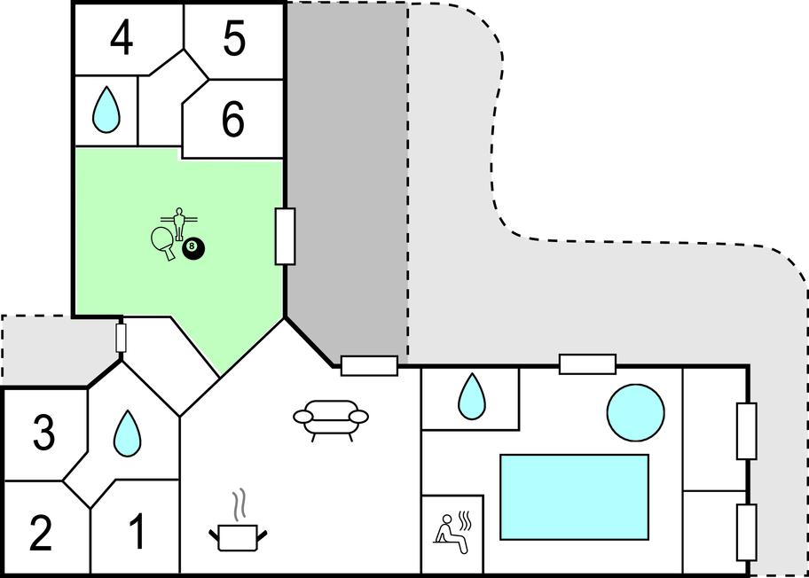 Rummeligt sommerhus med pool og aktivitetsrum