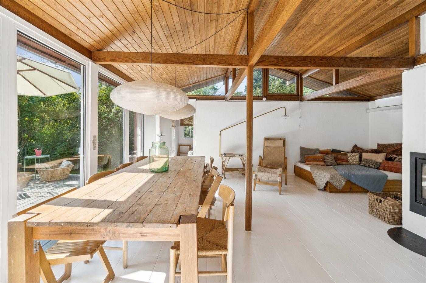 I sommerhusets køkken-alrum er der plads til fælles hygge og madlavning. Afslapning og leg i haven – og mad på grillen. For enden af haven er annekset placeret. Sommerhuset ligger tæt på badebyen Tisvildeleje og godt placeret i forhold til udflugter i Nordsjælland.